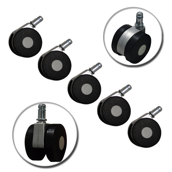 Ανταλλακτικά ροδάκια για καρέκλες γραφείου σε μαύρο χρώμα με ασημί λεπτομέρειες, σε σετ 5 τεμαχίων