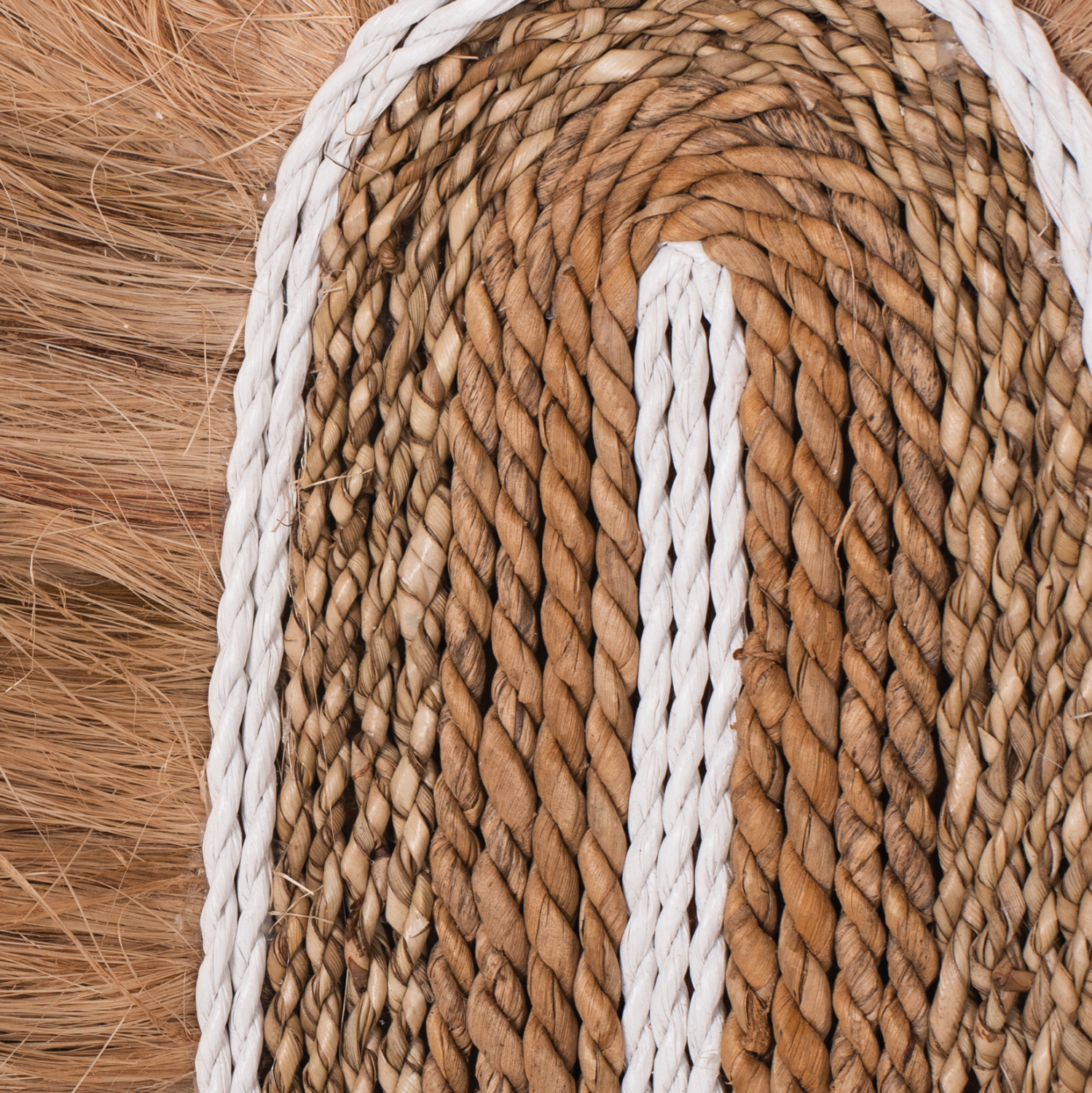 Το διακοσμητικό αυτό είναι κατασκευασμένο από κομμάτια καλαμιάς με ίνες και σχοινί αμπακά στο εμπρός μέρος. Η κάνναβη της Μανίλας, γνωστή και ως abaca, είναι ένας τύπος ίνας με στιλπνό χρώμα που λαμβάνεται από το Musa textilis (συγγενής των βρώσιμων μπανανών), που ονομάζεται επίσης κάνναβη Μανίλας καθώς και abaca. Το Abaca είναι μια εξαιρετικά ισχυρή ίνα, πολύ ακριβή και έχει πολλές φορές υψηλότερη τιμή από τον ξυλοπολτό. Το όνομα αναφέρεται στην πρωτεύουσα των Φιλιππίνων, έναν από τους κύριους παραγωγούς κάνναβης Μανίλας. Η καλλιέργεια φυτών abaca μπορεί να μειώσει τη διάβρωση, να αυξήσει τη βιοποικιλότητα και να εμπλουτίσει το έδαφος. Τέλος, είναι ανθεκτικό στο νερό και την υγρασία.