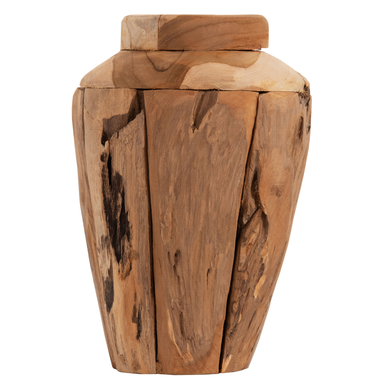 Το βάζο είναι κατασκευασμένο από ανακυκλωμένα ξύλα ΤΕΑΚ. Το ΤΕΑΚ είναι ο πιο δημοφιλής τύπος σκληρού ξύλου. Είναι χρώματος κίτρινο έως σκούρο καφέ, εξαιρετικά βαρύ, υψηλής αντοχής, ανθεκτικό στις καιρικές συνθήκες, ανθεκτικό στο σκέβρωμα και δεν αποσυντίθεται. Συχνά, τα νερά του ξύλου του είναι έντονα και σε ευθεία. Χρησιμοποιείται για πληθώρα κατασκευών εσωτερικού και εξωτερικού χώρου.