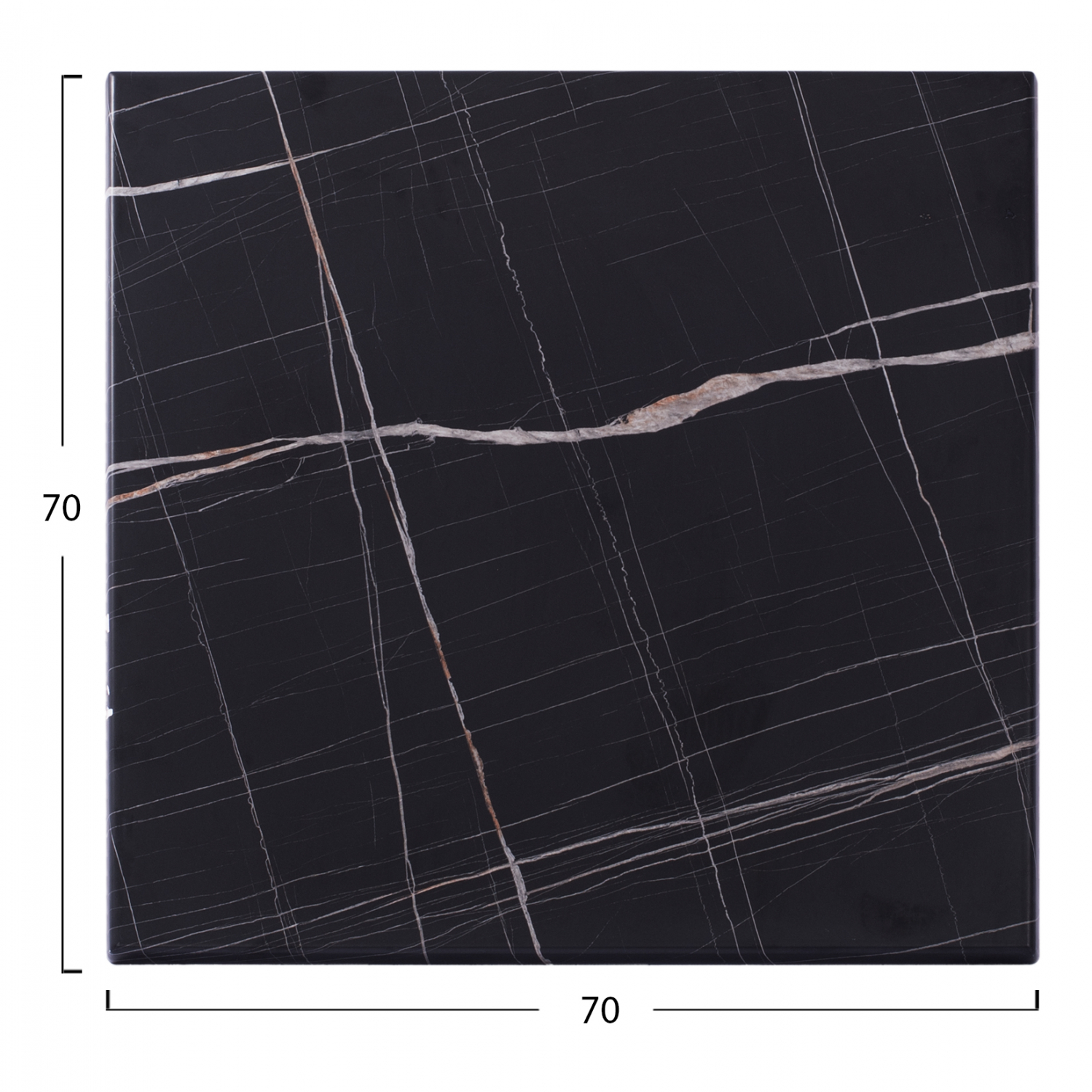 Επιφάνεια τραπεζιού werzalit 70X70 σε χρώμα μαύρο μάρμαρο με λευκές και μπεζ λεπτομέρειες.