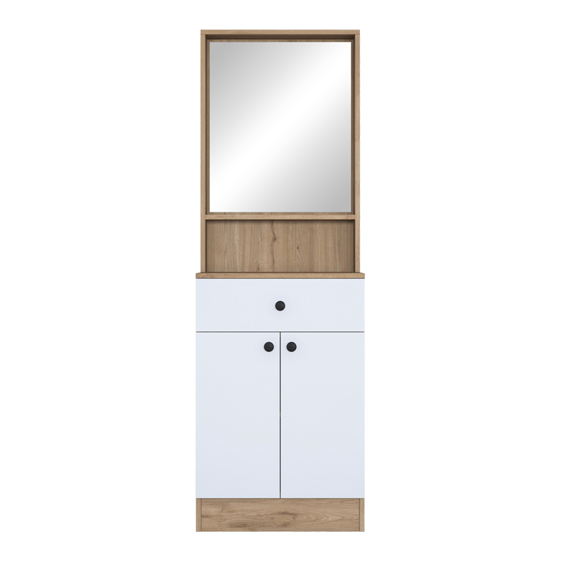 - Διαθέτει ένα δίφυλλο ντουλάπι και συρόμενο συρτάρι για κλειστή αποθήκευση των αντικειμένων της καθημερινότητας σας.