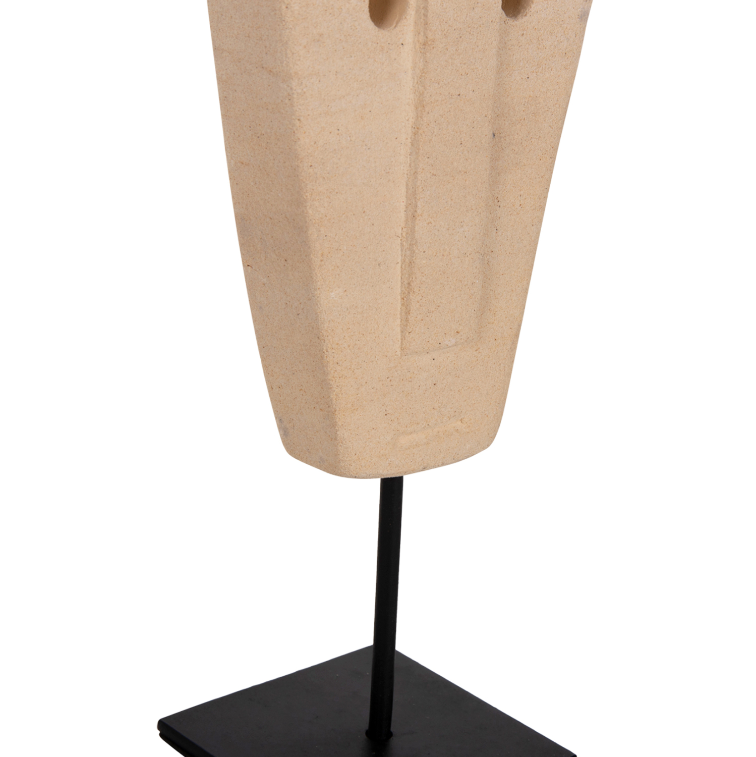 Το επιτραπέζιο διακοσμητικό ΗΜ4312 θα δώσει μια άλλη «αύρα» στον χώρο σας. Πρόκειται για ένα μακρόστενο προσωπείo, σε ΦΥΣΙΚΗ απόχρωση, τοποθετημένο σε ένα ΜΑΥΡΟ μεταλλικό stand. Αυτό που κάνει όμως το ΗΜ4312 να ξεχωρίζει είναι η σημειολογία του. Είναι κατασκευασμένο από PARAS STONE, το οποίο στα ελληνικά αποδίδεται ως «τυχερή πέτρα» και λέγεται ότι φέρνει τύχη στον κάτοχό του. Προέρχεται από την Ινδική μυθολογία στην οποία το PARAS STONE είχε την ιδιότητα να μετατρέπει οποιοδήποτε αντικείμενο σε χρυσό.