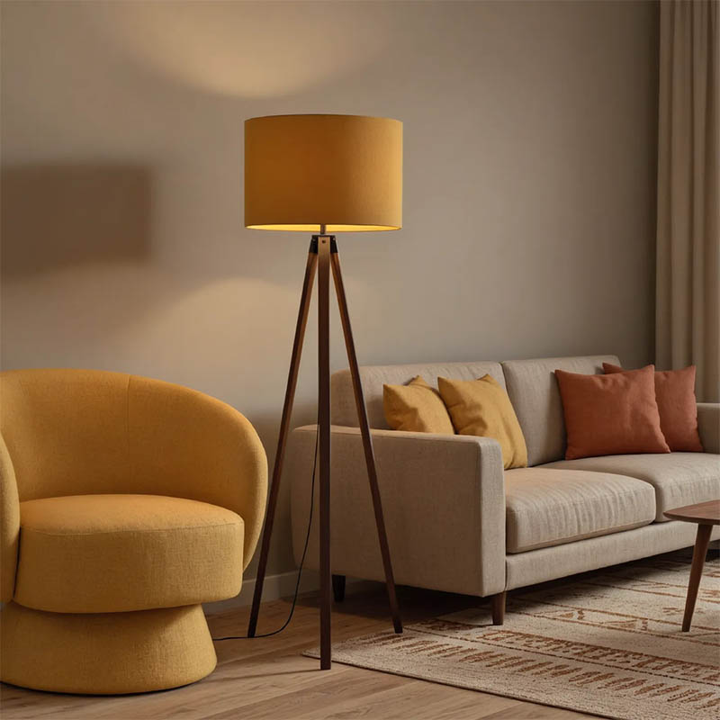 Φωτιστικό δαπέδου PWL-1059 pakoworld Ε27 καρυδί-κίτρινο Φ38×140εκ