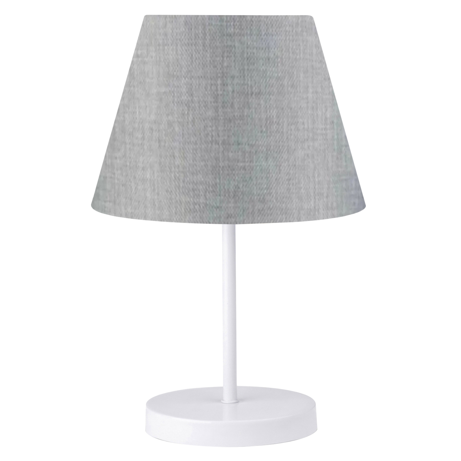 Μοντέρνο επιτραπέζιο φωτιστικό με κυκλική βάση και κολώνα σε λευκό χρώμα, και ανοιχτό γκρι υφασμάτινο τραπεζοειδές καπέλο. Πρόκειται για διακοσμητικό φωτιστικό, σε απλή και λιτή γραμμή. Το φως διαχέεται στον χώρο ευχάριστα και γλυκά ξεκουράζοντας την όραση. Αυτού του είδους τα φωτιστικά δεν προορίζονται για φωτιστικά διαβάσματος και αυτό πρέπει πάντα να λαμβάνεται υπόψη κατά την επιλογή τους. Είναι καθαρά διακοσμητικά και το ταίριασμά τους με τον περιβάλλοντα χώρο θα πρέπει να είναι αρμονικό. Αυτό το φωτιστικό είναι κομψό και βολικό σε διαστάσεις παρέχοντας αμέτρητες δυνατότητες «δεσίματος» με την υπόλοιπη διακόσμησή σας. Είναι ένα μικρό έργο τέχνης.