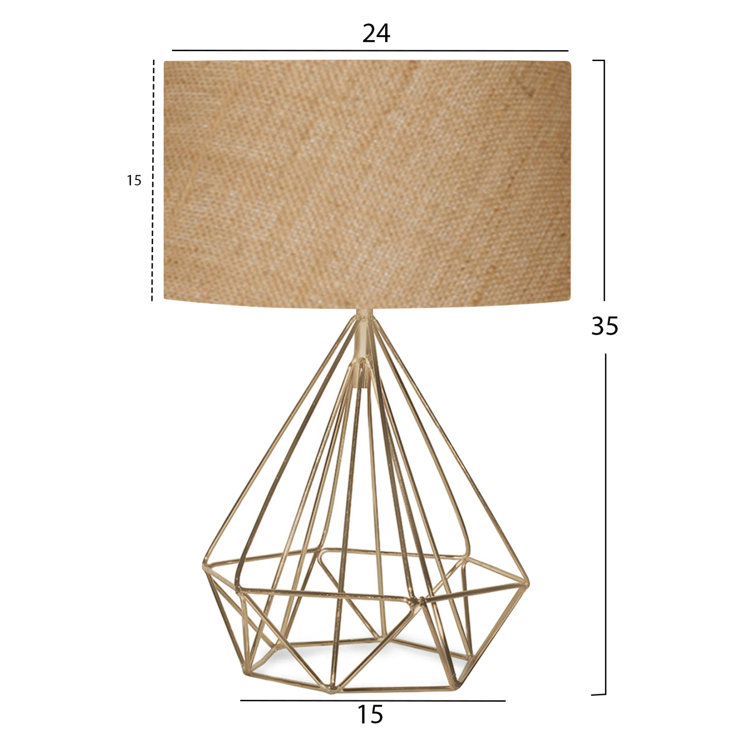 Βάση και κολώνα έχουν δώσει την θέση τους όμορφα σε ένα χρυσό μεταλλικό πλέγμα σε σχήμα πολύγωνης πυραμίδας και στην κορυφή του κάθεται το κυλινδρικό τύμπανο σε χρώμα μπεζ της άμμου, δημιουργώντας ένα σύνολο που είναι η επιτομή του μοντέρνου design εσωτερικών χώρων.
