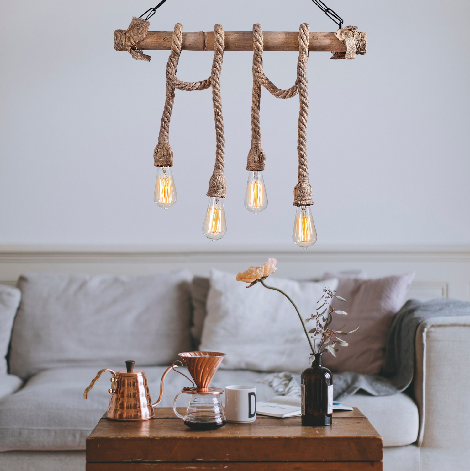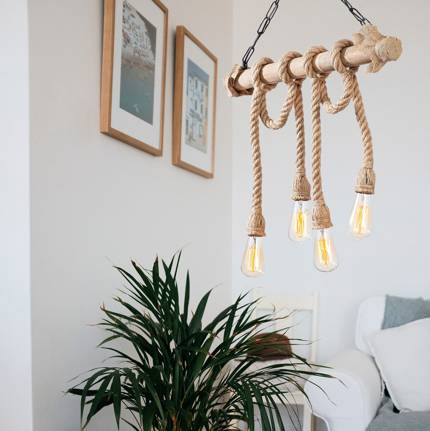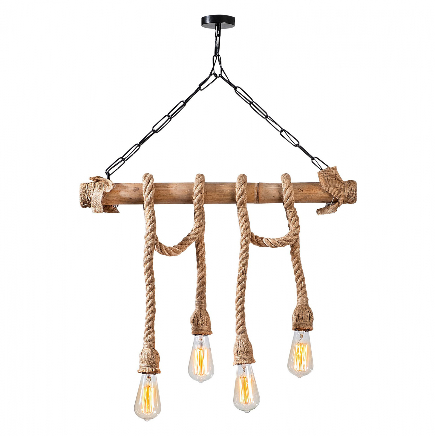 Φωτιστικό οροφής industrial αλλά και rustic στιλ. Κατασκευασμένο από ξύλινη ράγα φυσικού χρώματος και σχοινί σε φυσική απόχρωση.