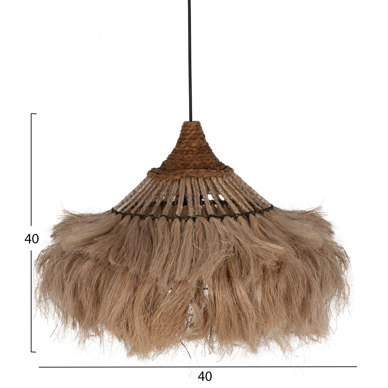 Hm7806- Kρεμαστό φωτιστικό—- Αυτό το φωτιστικό θα κάνει τον χώρο σας να ξεχωριζει. Είναι ένα μονόφωτο φωτιστικό με «καπέλο» σε σχήμα καμπάνας από ίνες και σχοινί κάνναβης Μανίλας σε φυσικό χρώμα. Το σχοινί βρίσκεται στο επάνω μέρος του καπέλου και το δένει με το κάλυμμα του ντουί.