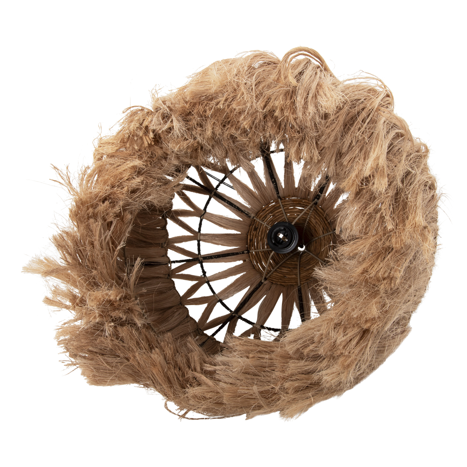 Hm7760- Kρεμαστό φωτιστικό—- Αν επιθυμείτε να διακοσμήσετε το χώρο σας με ένα φωτιστικό σε boho στυλ, αυτό είναι μια χαρακτηριστική επιλογή. Είναι ένα μονόφωτο φωτιστικό με «καπέλο» σε σχήμα καμπάνας φτιαγμένο από ίνες κάνναβης Μανίλας σε φυσικό χρώμα. Το ιδιαίτερο χαρακτηριστικό αυτού του φωτιστικού είναι ότι στο επάνω μέρος του καπέλου οι ίνες είναι πλεγμένες με χιαστί τρόπο δίνοντας μια άλλη αισθητική στο φωτιστικό.
