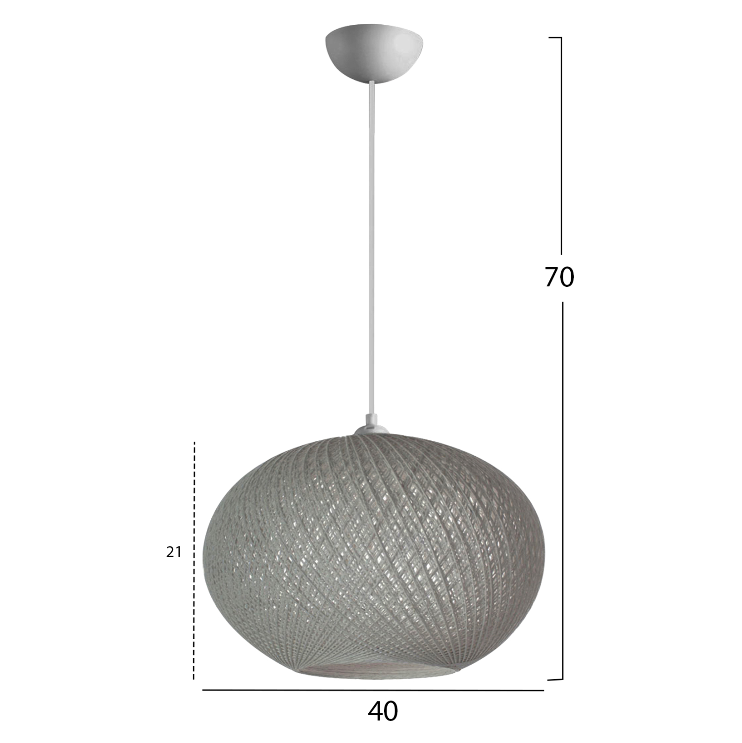 Αν επιθυμείτε να διακοσμήσετε το χώρο σας με ένα φωτιστικό σε boho στυλ, αυτό είναι η πιο σωστή επιλογή. Είναι ένα μονόφωτο φωτιστικό σε σχήμα ελλειπτικό σφαιρικό και είναι επενδυμένο με λεπτό πλεκτό σκοινί, υψηλής ποιότητας και αντοχής στο χρόνο, σε γκρι απόχρωση. Tο ύψος του φωτιστικού προσαρμόζεται ανάλογα με τον τρόπο τοποθέτησης, έτσι ώστε να το διαμορφώσετε στο ύψος που σας ικανοποιεί.