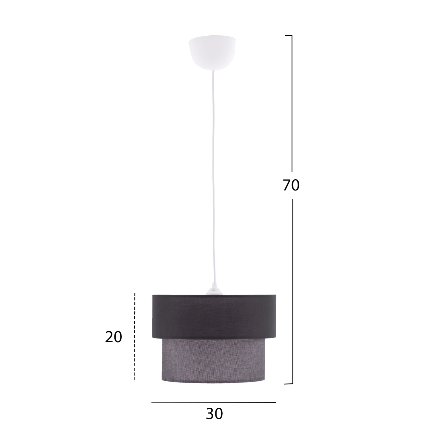 ΠΛΕΟΝΕΚΤΗΜΑΤΑ: Η αισθητική υπεροχή αυτού του φωτιστικού θα το κάνει να ξεχωρίζει στον χώρο σας γιατί έχει μια απλοϊκή αλλά καλλιτεχνική εμφάνιση. Ο πλαστικός του σκελετός είναι άψογα κατασκευασμένος ενώ το τύμπανο έχει δύο δακτυλίους. Ο εξωτερικός δακτύλιος είναι κατασκευασμένος από σκούρο γκρι ύφασμα, ενώ το εσωτερικό από ανοιχτό γκρι ύφασμα. Το αποτέλεσμα είναι εξαιρετικά κομψό σε εμφάνιση. Καταφέρνει να συνδυάσει μια ελκυστική μοντέρνα βιομηχανική γοητεία με το ιδανικό μέγεθος, προσθέτοντας έτσι μια όμορφη διακόσμηση στην οροφή σας. Το ρυθμιζόμενο ύψος του μπορεί να προσφέρει διαφορετικά επίπεδα φωτεινότητας και οπτικής απόλαυσης. Εκτός από διάφορα δωμάτια του σπιτιού σας, μπορεί, επίσης, να ταιριάξει και σε επαγγελματικούς χώρους όπως εστιατόρια, καφέ, ξενοδοχεία κτλ. Τα χρώματα του φωτιστικού και το design αιχμαλωτίζουν τα βλέμματα, αλλά ταυτόχρονα απαιτεί και ιδιαίτερη διακοσμητική συνοχή για να αναδειχθούν πλήρως οι αισθητικές αρετές του.