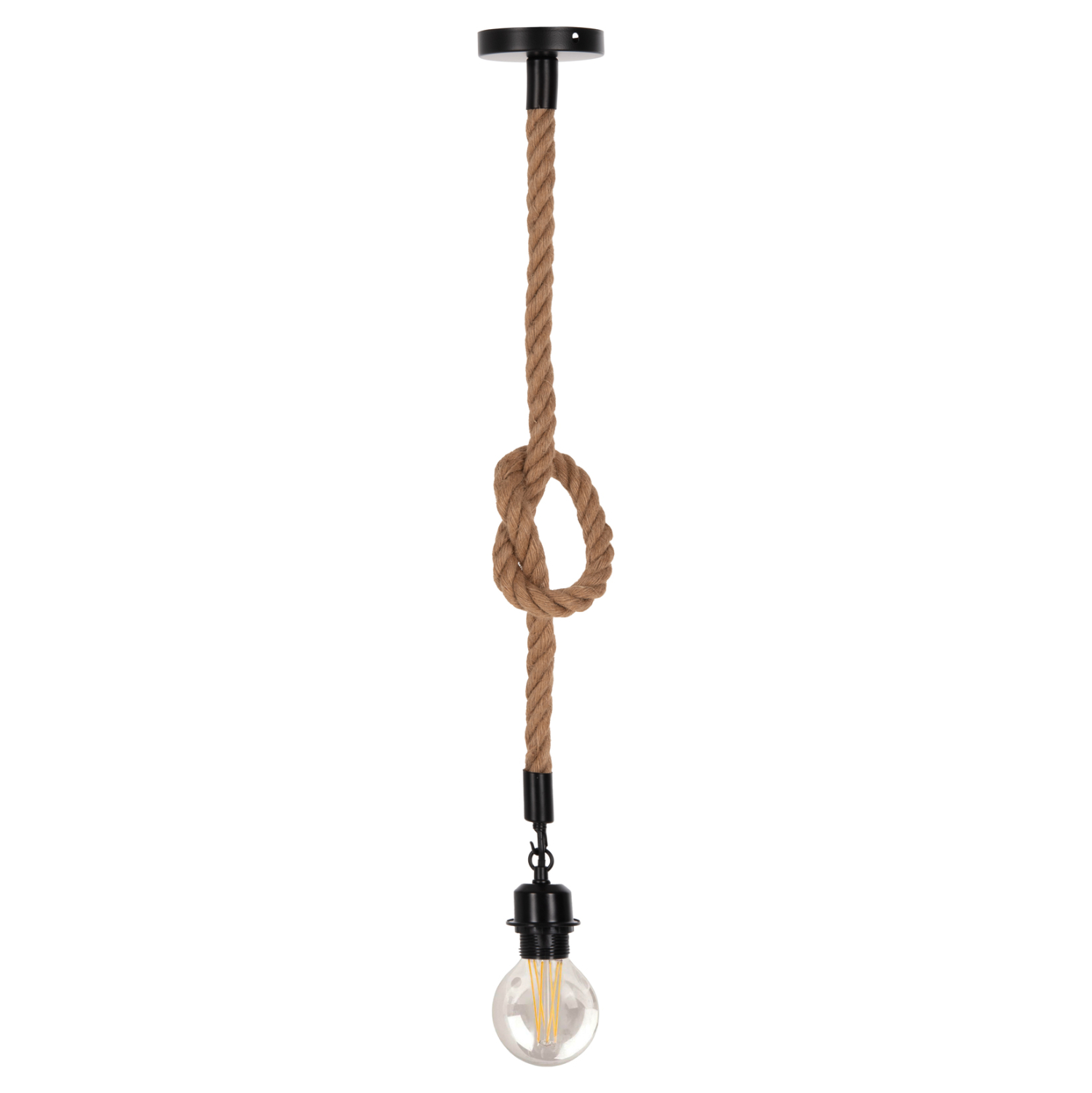Θέλετε να ξεχωρίσετε και να δημιουργήσετε μια εντελώς διαφορετική αίσθηση στο σπίτι ή στην επιχείρησή σας; Αυτό το φωτιστικό οροφής με την μία λάμπα σε σχοινί είναι σίγουρο ότι θα τραβήξει όλα τα βλέμματα και θα ξεκινήσει συζητήσεις. Αφήστε το απλά να κρέμεται ή φτιάξτε έναν κόμπο όπως εσείς θέλετε, έτσι ώστε να δώσετε την προσωπική σας πινελιά στον χώρο. Άλλωστε αυτό θα πρέπει να είναι και ένα από τα κυριότερα χαρακτηριστικά του φωτισμού. Να αντανακλά τον χαρακτήρα και την προσωπικότητα του ιδιοκτήτη! Ο φωτισμός είναι το κόσμημα του σπιτιού ή του επαγγελματικού σας χώρου.