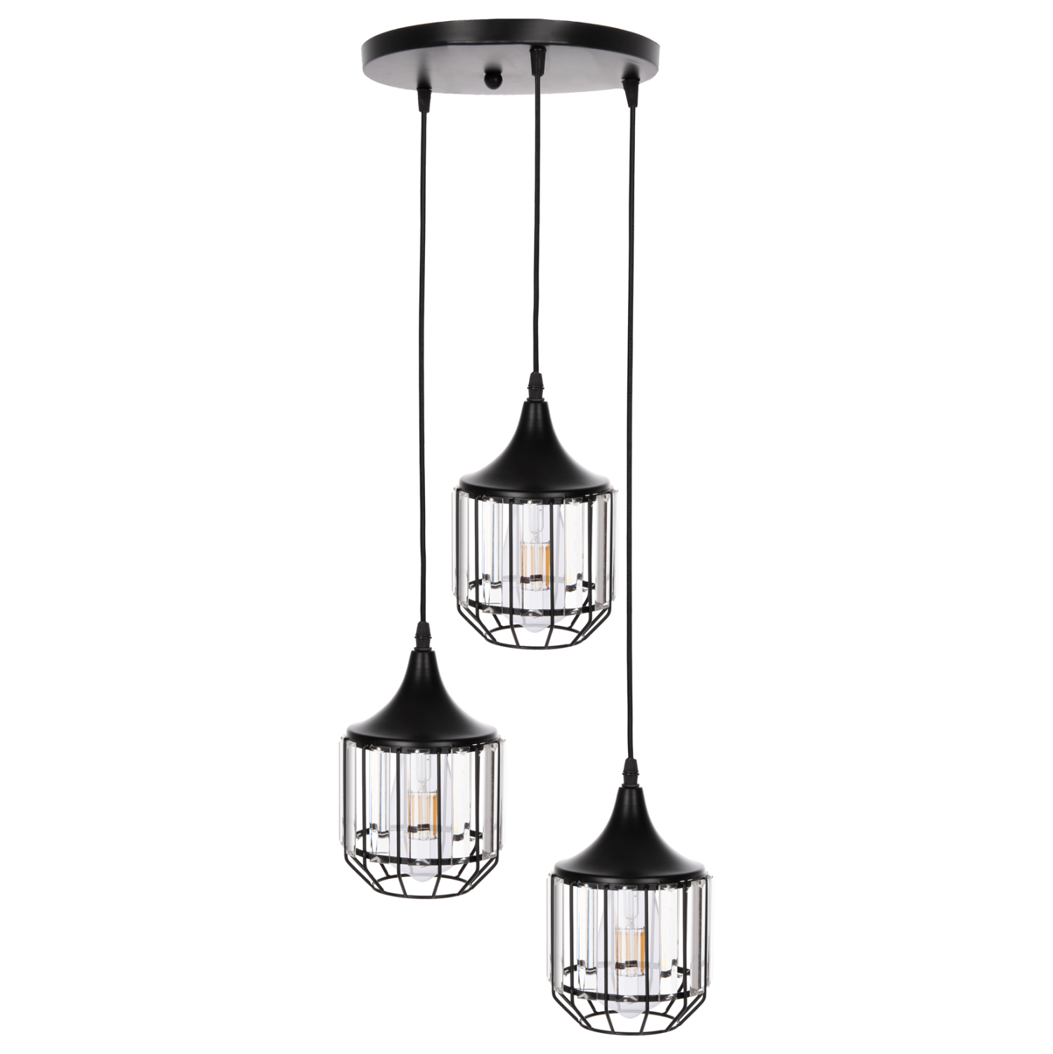 ΦΩΤΙΣΤΙΚΟ ΟΡΟΦΗΣ ΚΡΕΜΑΣΤΟ HM4084 3ΦΩΤΟ ΜΑΥΡΟ ΜΕΤΑΛΛΟ-ΓΥΑΛΙ Φ14x123Yεκ.
