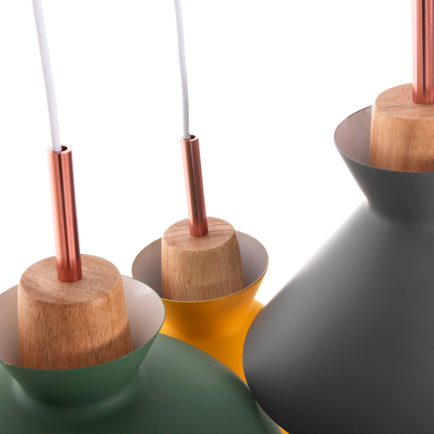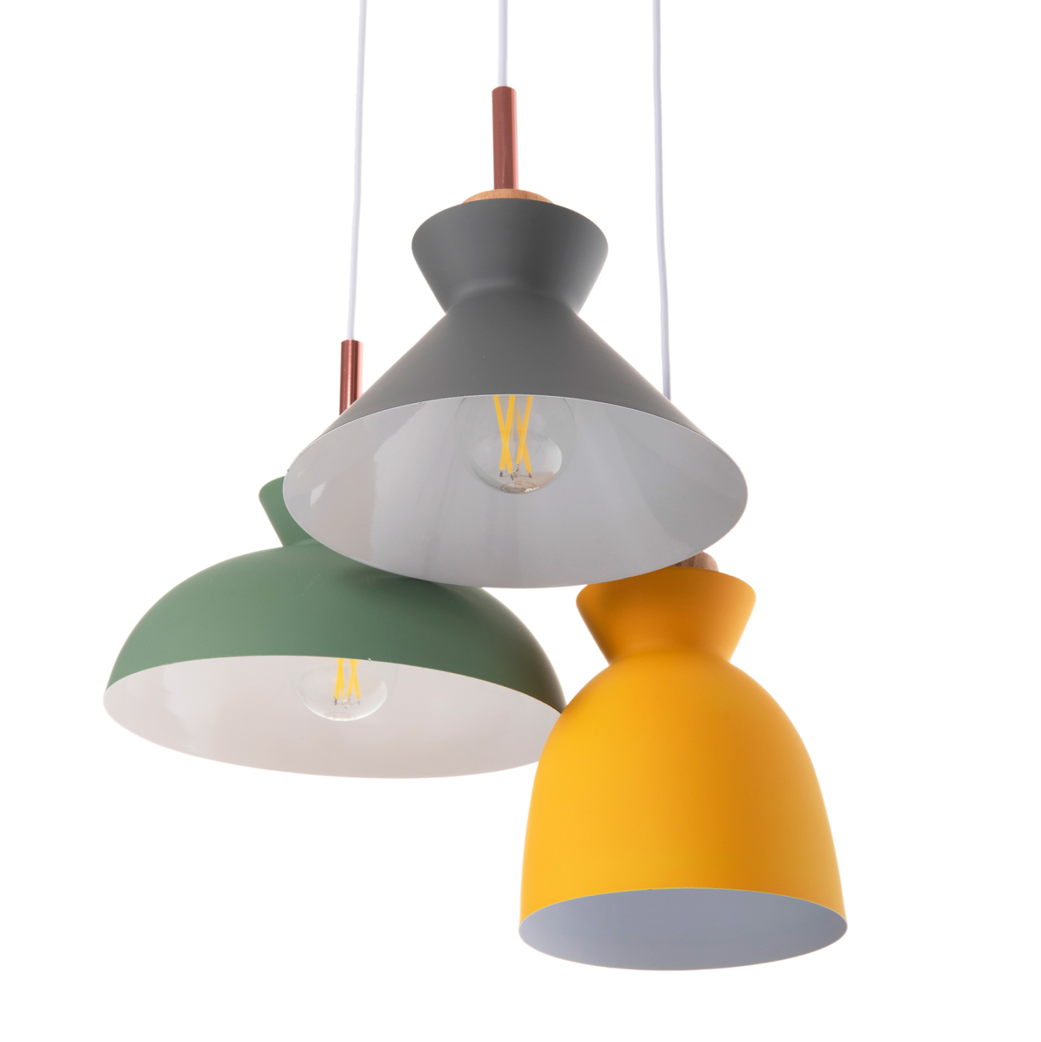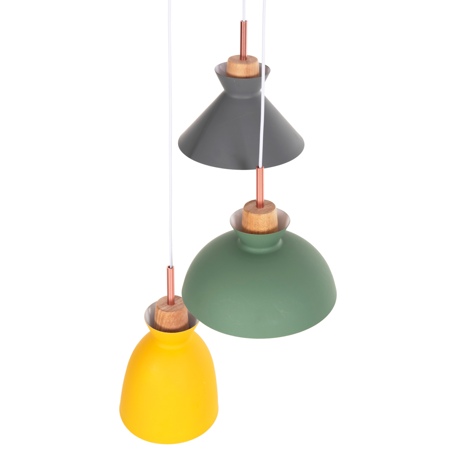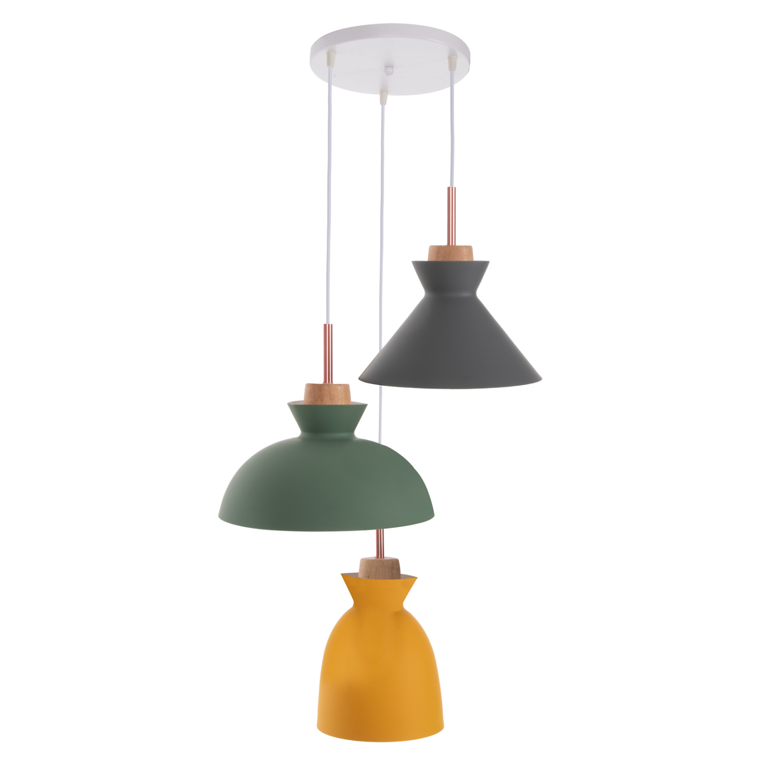Ανακαλύψτε το όμορφο 3-φωτο φωτιστικό οροφής HM4141. Ένα φωτιστικό που θα συμπληρώσει την διακόσμηση του σαλονιού, χάρη στα 3 καπέλα με διαφορετικό σχήμα και διαφορετικό χρώμα η κάθε μια. Τα 3 χρώματα (γκρι-πράσινο-κίτρινο) συνοδεύονται με την λεπτομέρεια από ξύλο, από το οποίο κρέμονται τα καπέλα και φτάνει μέχρι το ντουί βιδώματος της λάμπας.
