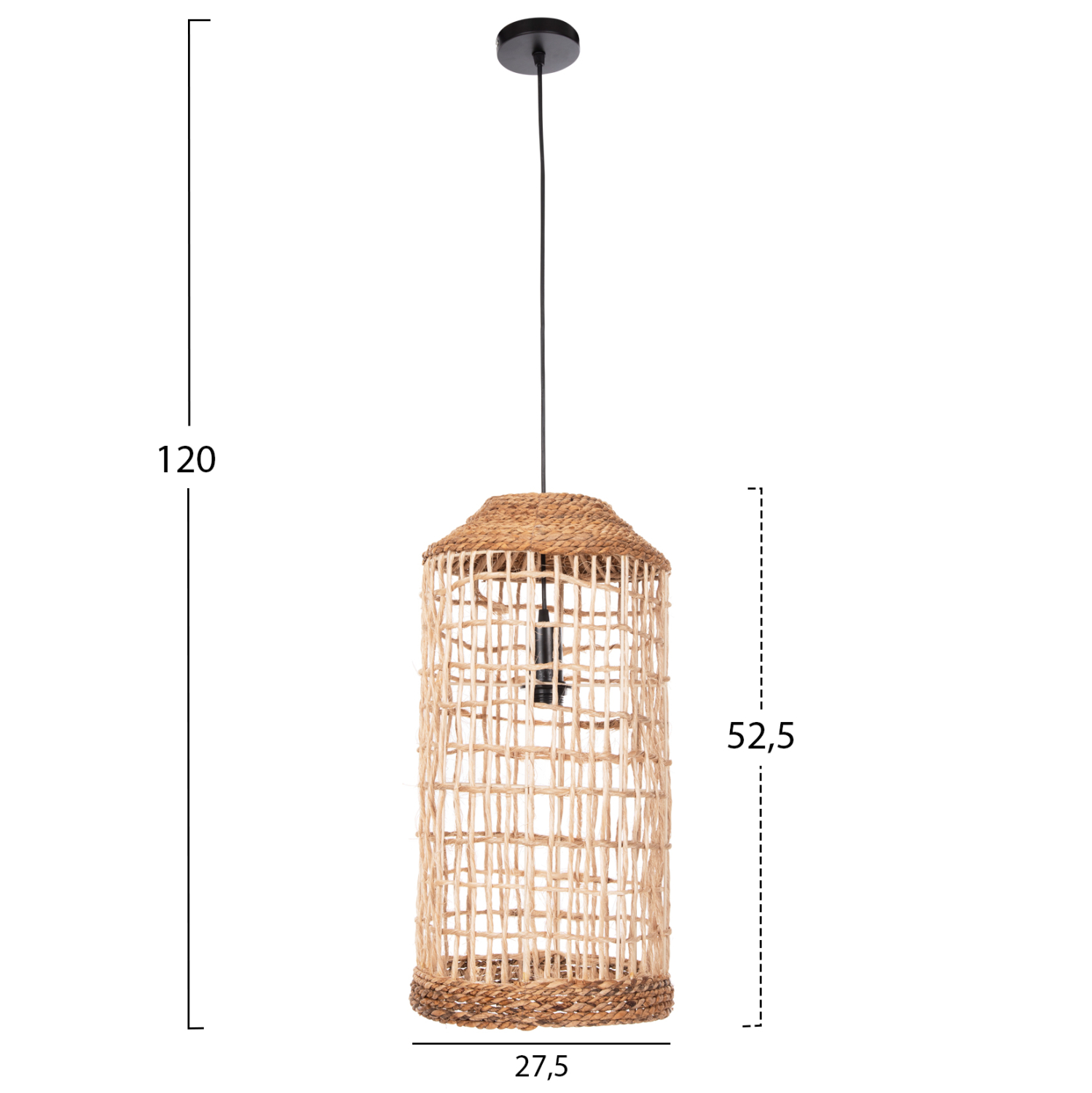 Hm7767- Kρεμαστό φωτιστικό—- Αν επιθυμείτε να διακοσμήσετε το χώρο σας με ένα φωτιστικό σε πολύ ιδιαίτερο στυλ, αυτό είναι η πιο σωστή επιλογή. Είναι ένα μονόφωτο φωτιστικό με μακρύ κυλινδρικό «καπέλο» σε στυλ κλουβί, φτιαγμένο από ίνες κάνναβης Μανίλας ή αλλιώς αμπακά, σε φυσικό χρώμα.