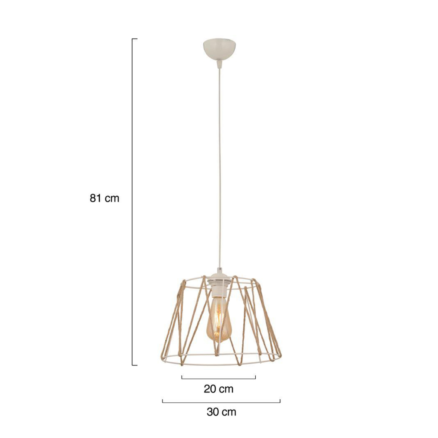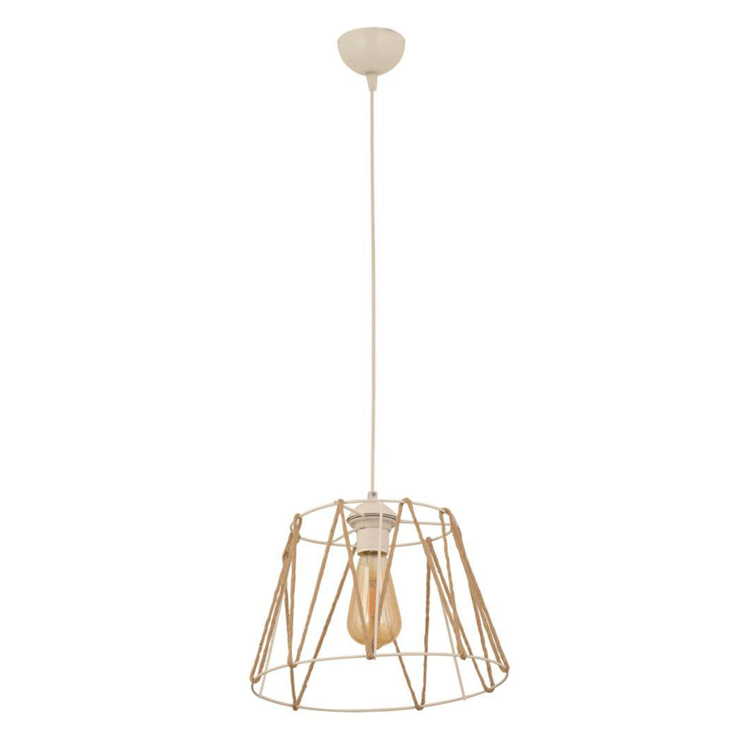 Φωτιστικό οροφής, σε λευκή απόχρωση με σχοινί σε μπεζ χρώμα.
