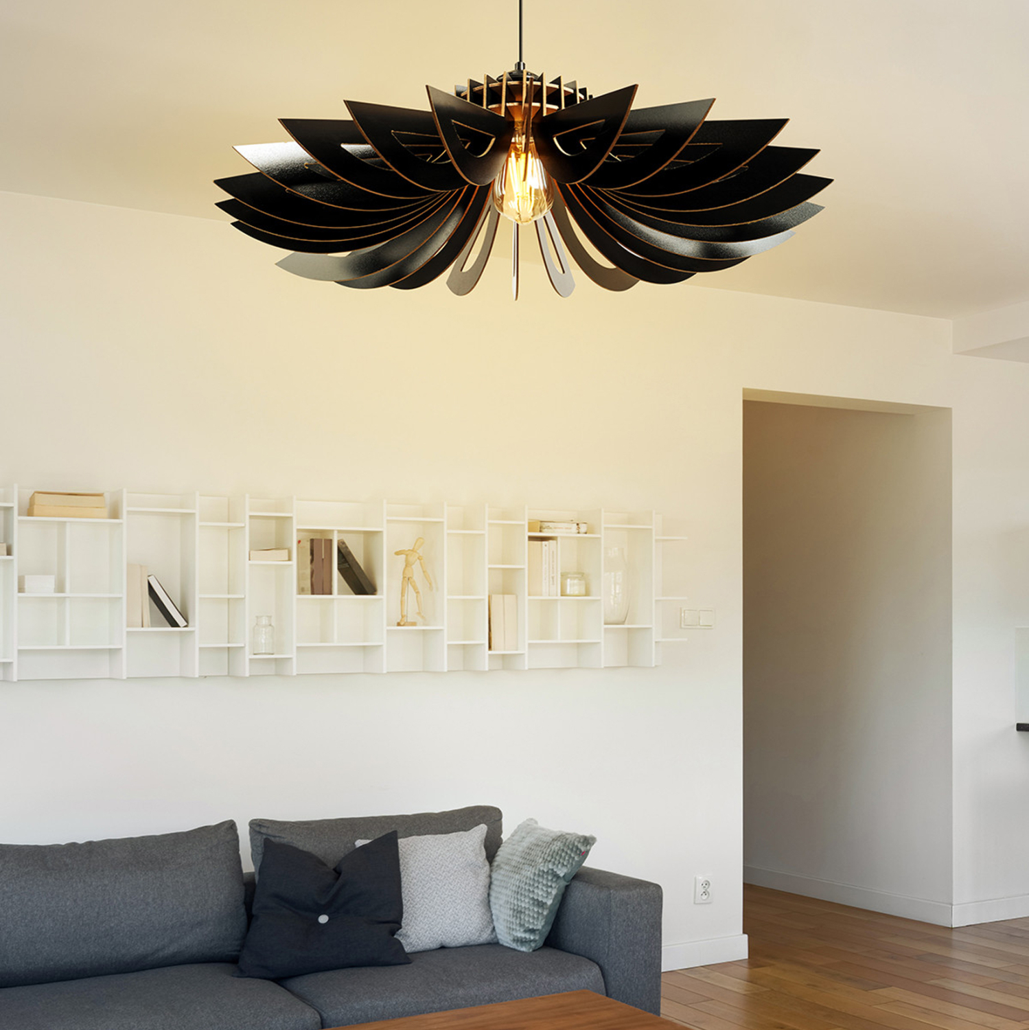 ΦΩΤΙΣΤΙΚΟ ΟΡΟΦΗΣ ΞΥΛΙΝΟ ΚΡΕΜΑΣΤΟ ΜΑΥΡΟ HM7348.03 Φ68×50Υ εκ.