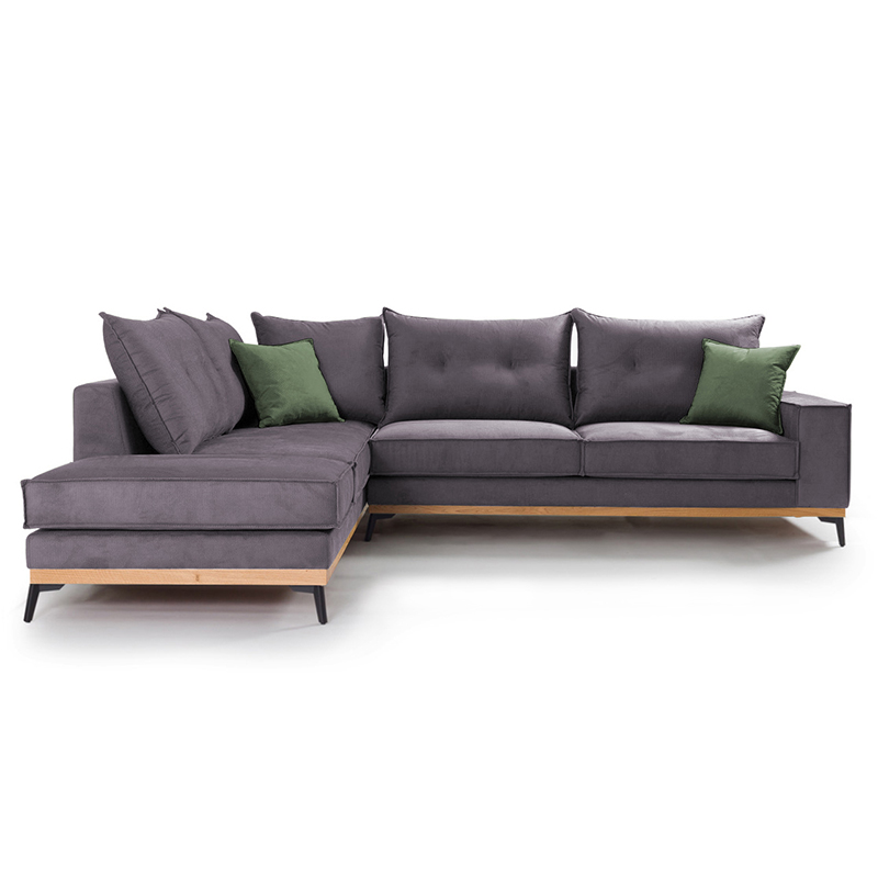 Γωνιακός καναπές δεξιά γωνία Luxury II pakoworld ύφασμα ανθρακί-κυπαρισσί 290x235x95εκ