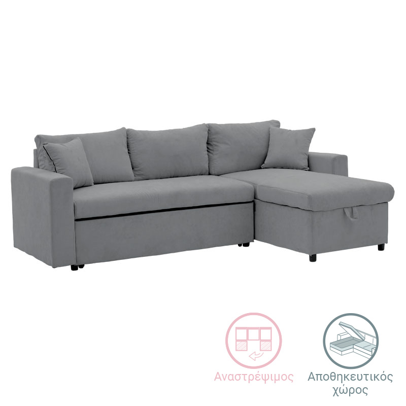 Γωνιακός καναπές-κρεβάτι αναστρέψιμος Lilian pakoworld γκρι 225x148x81εκ