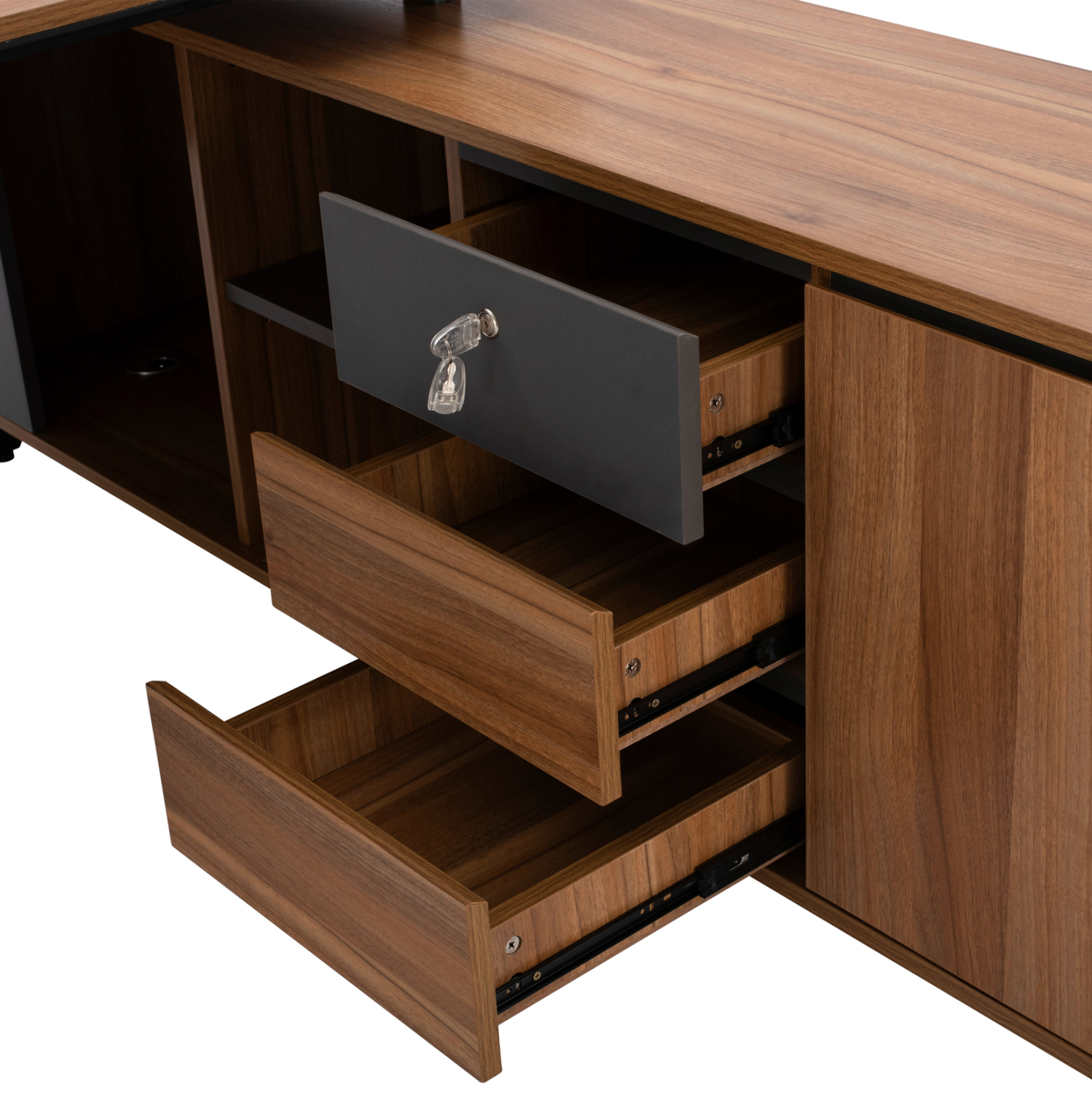 Επαγγελματικό γραφείο SUPREME με αναστρέψιμη γωνία, κατασκευασμένο από μελαμίνη υψηλής ποιότητας, σε γκρι και honey oak απόχρωση.
