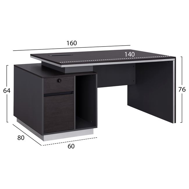 Επαγγελματικό γραφείο με ντουλάπι στην αριστερή πλευρά, κατασκευασμένο από μελαμίνη υψηλής ποιότητας, σε γκρι και βέγγε απόχρωση.