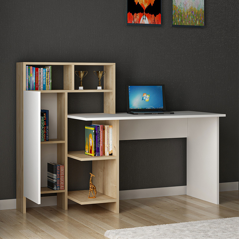 Γραφείο με βιβλιοθήκη Slate pakoworld χρώμα λευκό-φυσικό 120x60x112εκ