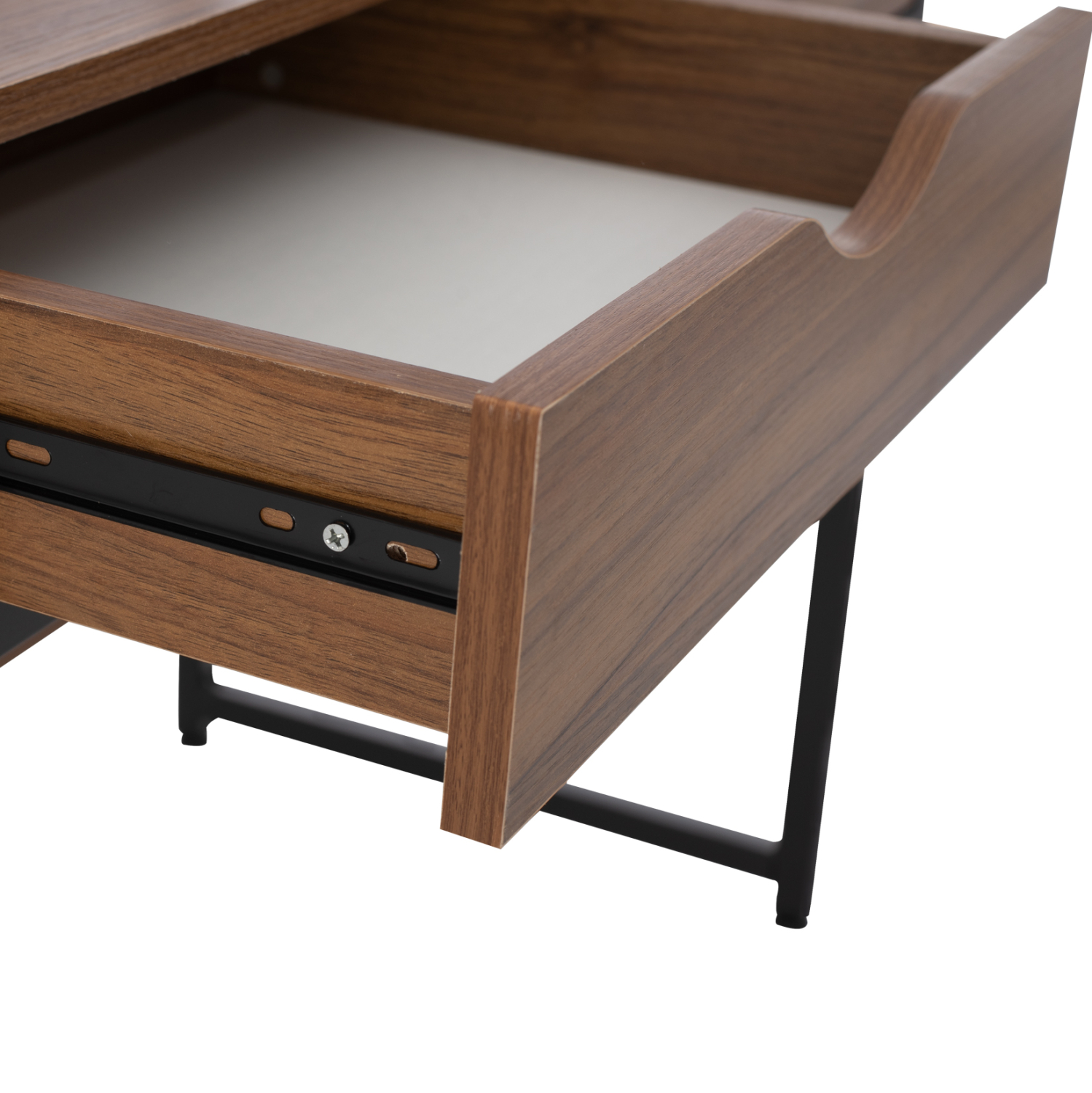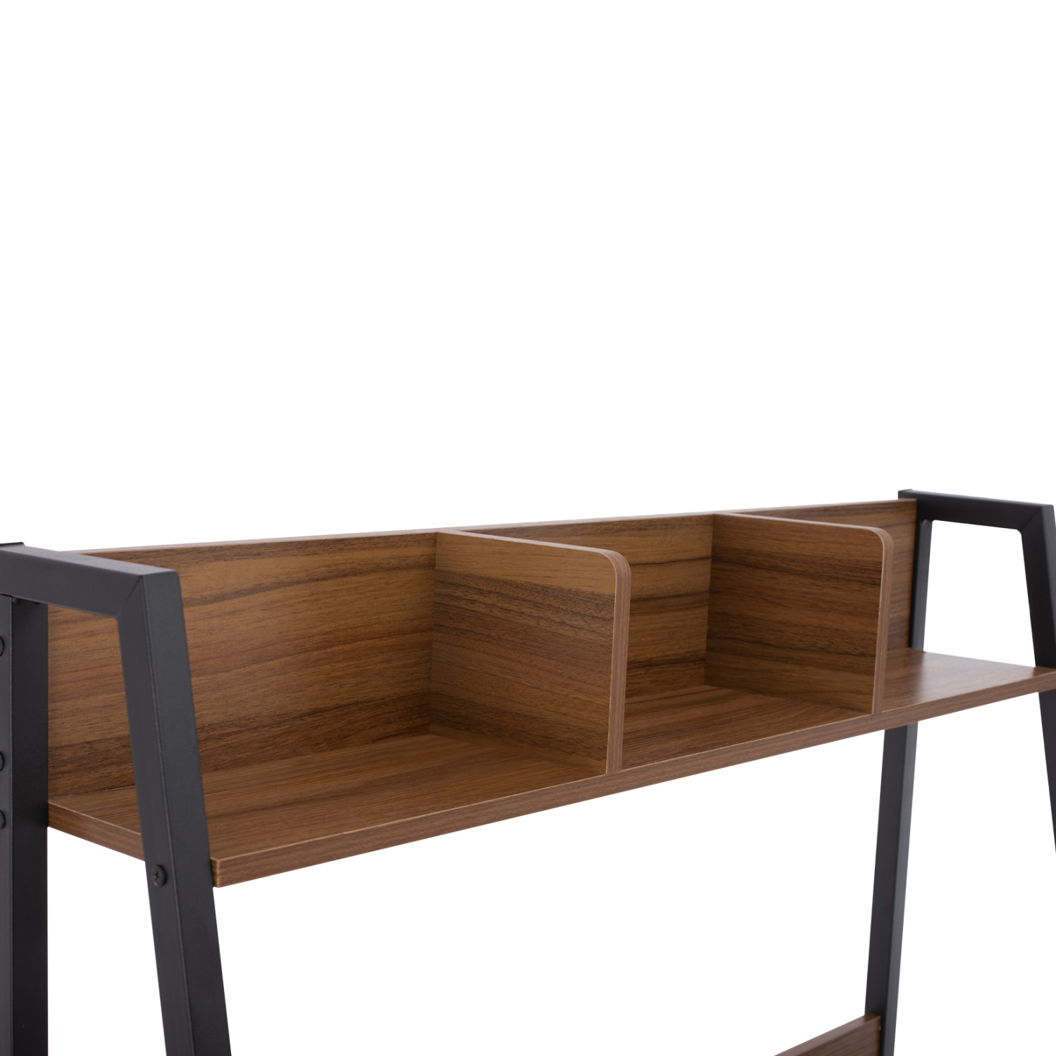 Το γραφείο TANAYA είναι μια πρακτική και όμορφη πρόταση, τόσο για το σπίτι, όσο και για τον επαγγελματικό σας χώρο. Ο ΜΑΥΡΟΣ σκελετός με το ΚΑΡΥΔΙ χρώμα στις επιφάνειες είναι ένας συνδυασμός που πραγματικά κάνει το έπιπλο να ξεχωρίζει στον χώρο. Το γραφείο αυτό διαθέτει δύο συρτάρια σε ΚΑΡΥΔΙ χρώμα και ένα ανοιχτό ράφι στο κάτω μέρος. Ωστόσο, το πιο σημαντικό κομμάτι αυτού του γραφείου είναι ότι διαθέτει μια μικρή βιβλιοθήκη τοποθετημένη με έναν επιπλέον σκελετό επάνω από την κύρια επιφάνεια. Αυτή η βιβλιοθήκη είναι ουσιαστικά ένα ράφι χωρισμένο σε 3 χώρους, και προσδίδει ευελιξία και ευκολία στην καθημερινή χρήση.
