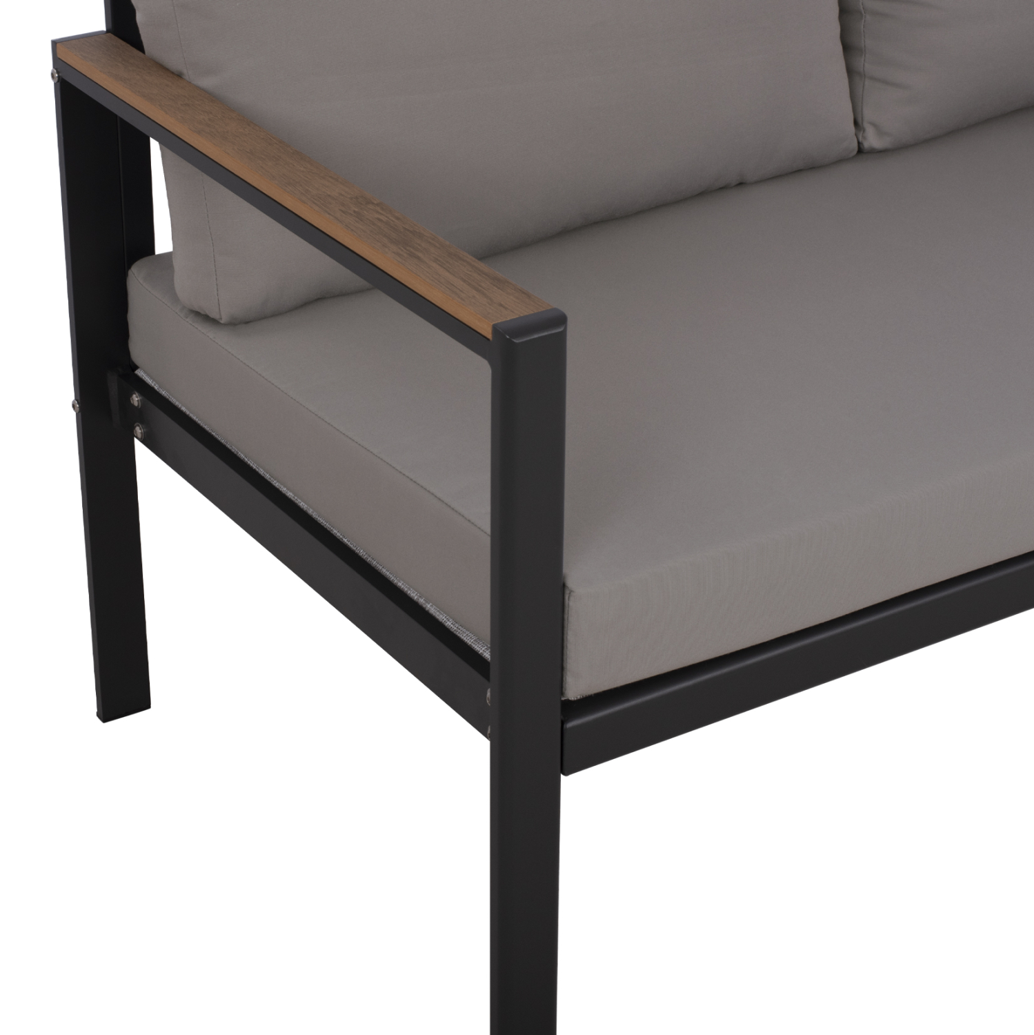 Ο SAFIYA είναι ένας όμορφος 2θέσιος καναπές εξωτερικού χώρου. Αισθητικά, έχει συνδυασμό σκούρων χρωμάτων, όπως ο ΑΝΘΡΑΚΙ σκελετός αλουμινίου, και τα μεγάλα μαξιλάρια πλάτης και καθίσματος με πολυεστερικό ύφασμα σε πιο ανοιχτό ΓΚΡΙ χρώμα. Ένας συνδυασμός που είναι όμορφος, και μαγνητίζει τα βλέμματα. Χαρακτηριστικό γνώρισμα αυτού του καναπέ είναι ότι τα πόδια είναι ψηλά, με αποτέλεσμα και το ύψος του καθίσματος να είναι ψηλό, ενώ η «πινελιά» με το polywood στα μπράτσα δίνει έναν τόνο πολυτέλειας που δεν περνάει απαρατήρητη.