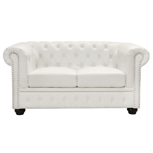 Καναπές διθέσιος τύπου Chesterfield, με τεχνόδερμα σε λευκό ματ 155x90x73 εκ.