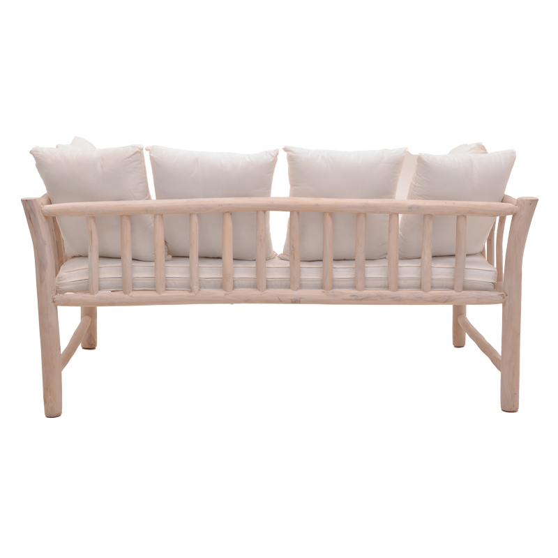 Καναπές διθέσιος Dranjere pakoworld teak ξύλο σε φυσική απόχρωση με μπεζ ύφασμα 167x80x71εκ
