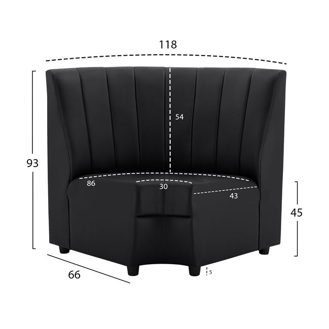 Γωνιακή μονάδα επενδεδυμένη από τεχνόδερμα σε μαύρη απόχρωση, ιδανική για επαγγελματικούς χώρους.