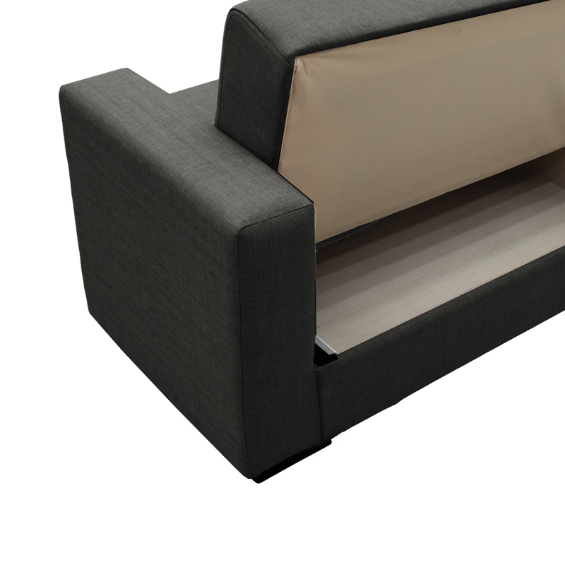 - Φέρει εύχρηστο μηχανισμό που με μία μόνο κίνηση ανασηκώνεται, μετατρέποντας τον καναπέ σε κρεβάτι και το αντίστροφο.