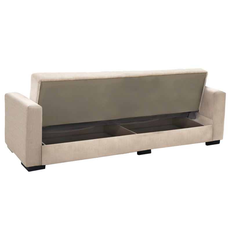 Καναπές-κρεβάτι με αποθηκευτικό χώρο τριθέσιος Vox pakoworld κρεμ ύφασμα 214x82x83εκ