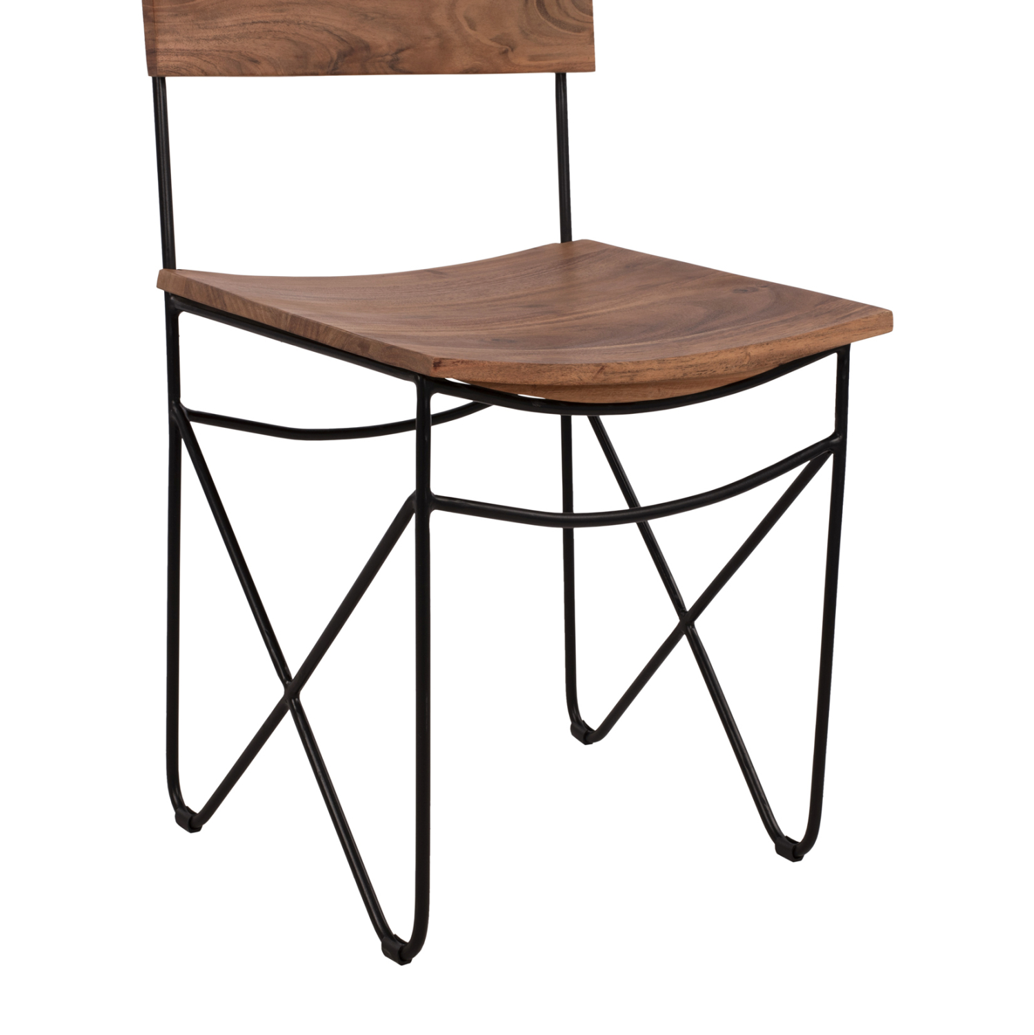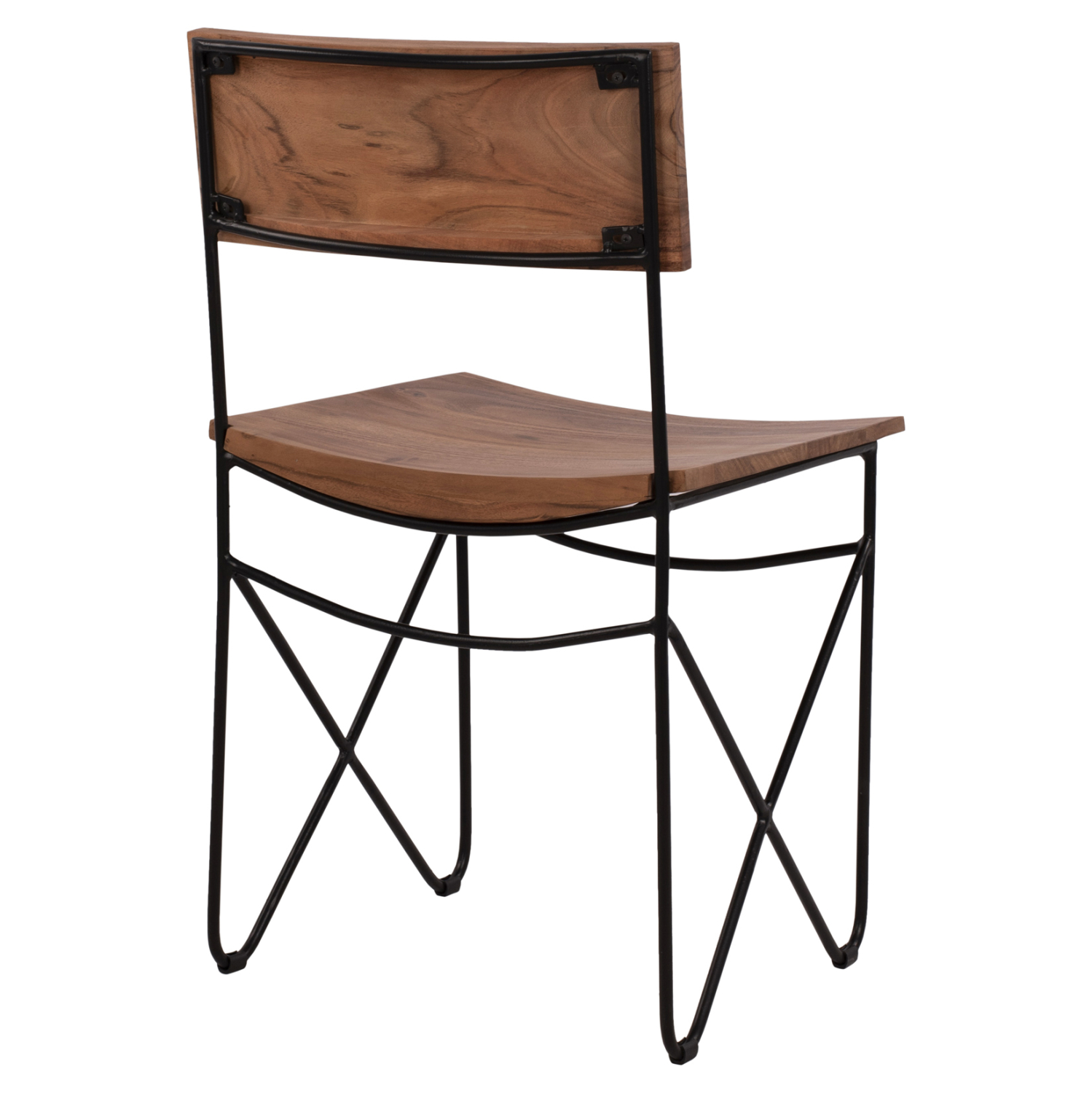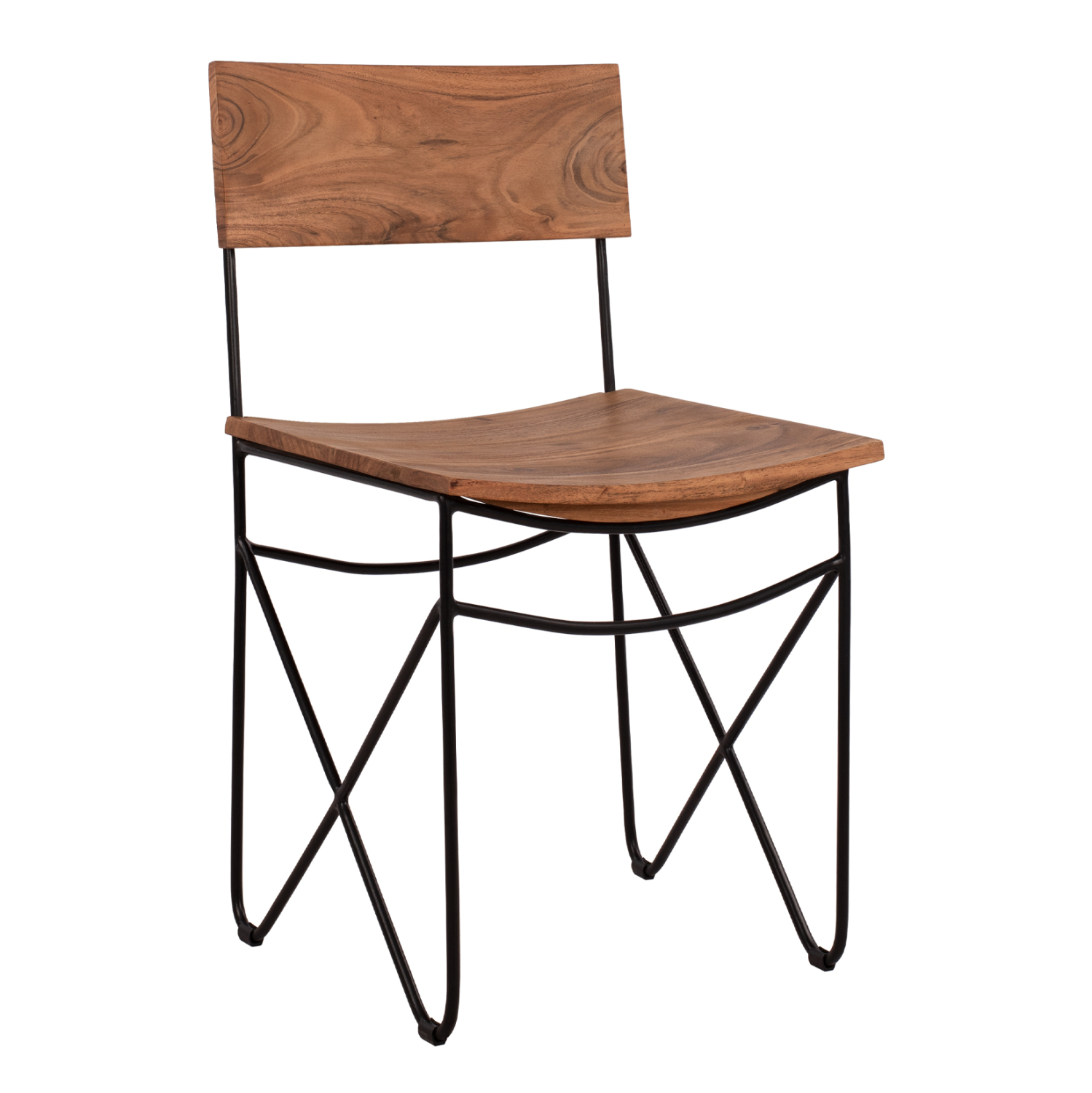 Η καρέκλα HM8180 είναι κατασκευασμένη από μασίφ ξύλο ακακίας σε φυσική απόχρωση και μέταλλο σε μαύρο χρώμα.