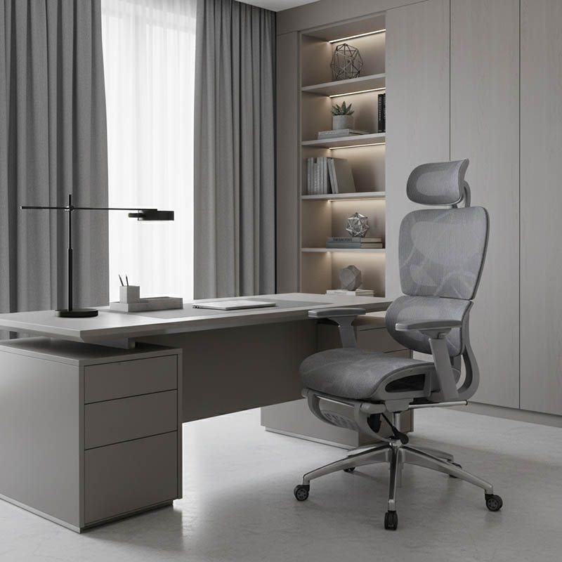 Καρέκλα γραφείου διευθυντή με υποπόδιο Thelonius pakoworld mesh γκρι