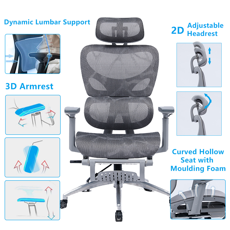 • Προσαρμοσμένο υποπόδιο: που υποστηρίζει την πολύωρη χρήση του καθίσματος, εξασφαλίζοντας την ξεκούραση του χρήστη.