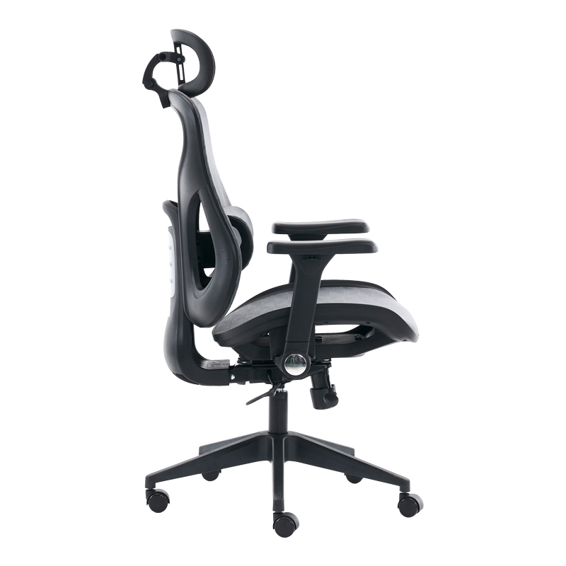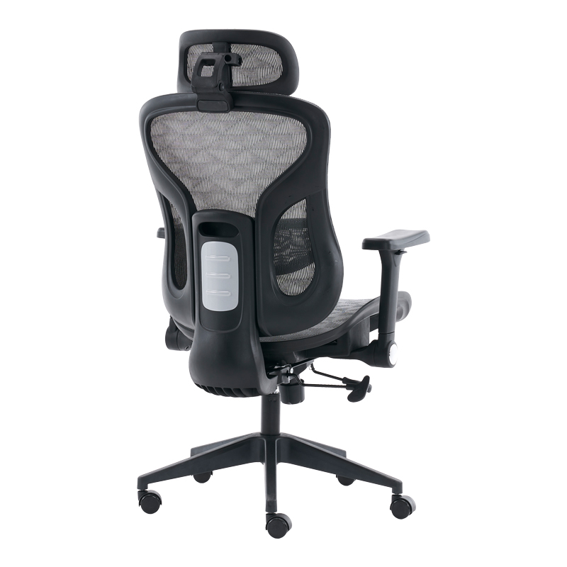• Η πλάτη είναι ρυθμιζόμενη καθ’ ύψος επιτρέποντας την τέλεια ευθυγράμμιση της οσφυϊκής στήριξης με το σώμα του χρήστη.