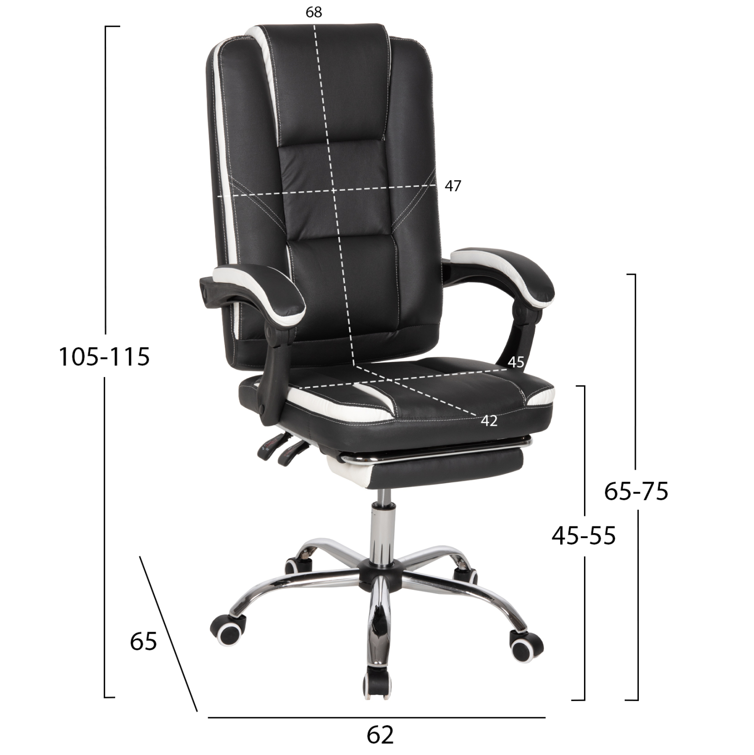 ΚΑΡΕΚΛΑ ΓΡΑΦΕΙΟΥ SEENA HM1190.02 ΜΑΥΡΟ-ΛΕΥΚΟ PU-ΠΤΥΣΣΟΜΕΝΟ ΥΠΟΠΟΔΙΟ 62x65x115Yεκ.