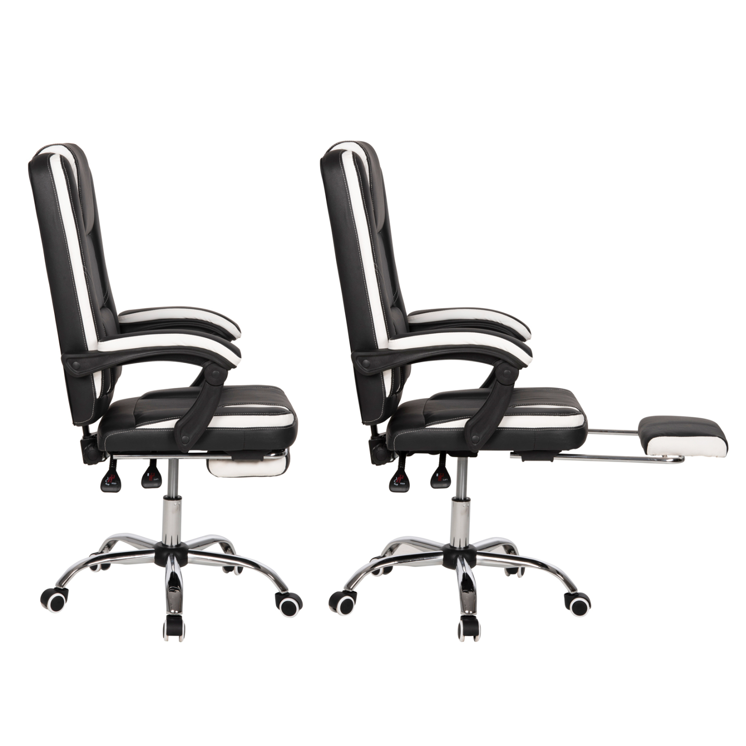 Η καρέκλα γραφείου SEENA σε ΜΑΥΡΟ και ΛΕΥΚΟ χρώμα θα σας ενθουσιάσει. Επιβλητική στην όψη θα προκαλέσει τον θαυμασμό όλων όσων την κοιτάξουν. Πολύ περισσότερο βέβαια, θα την ευχαριστηθείτε εσείς που θα την χρησιμοποιείτε ατέλειωτες ώρες δουλεύοντας στο γραφείο σας. Πρόκειται για μια καρέκλα με ψηλή πλάτη έτσι ώστε να προστατεύεις τον κορμό σου από τραυματισμούς και πιασίματα και να του προσφέρεις μοναδική στήριξη. Το πλούσιο «γέμισμα» με αφρώδη υλικά τόσο στο κάθισμα και τα μπράτσα, όσο και στην πλάτη αλλά και στην περιοχή του κεφαλιού, θα σε κάνουν να μην νιώσεις καθόλου κούραση ακόμα και μετά από ατελείωτες ώρες μπροστά στον υπολογιστή. Κι αν κάποια στιγμή θέλεις να κάνεις ένα διάλειμμα και να κοιμηθείς, ή απλά να συνεχίσεις την ολονυχτία σου ξαπλωμένος χρησιμοποιώντας τα ασύρματα gadget σου, η πλάτη της καρέκλας «πέφτει» και σε συνδυασμό με το πτυσσόμενο υποπόδιο, σου δίνει την δυνατότητα να εκμεταλλευτείς το κάθε δευτερόλεπτο! Οι ρυθμίσεις ύψους και ανάκλισης, μέσω δύο καλαίσθητων μοχλών, είναι φυσικά στον…στάνταρ εξοπλισμό, ενώ η πλάτη μπορεί να ανεβαίνει και να κατεβαίνει ολόκληρη μέσω ενός περιστροφικού ρεγουλατόρου!