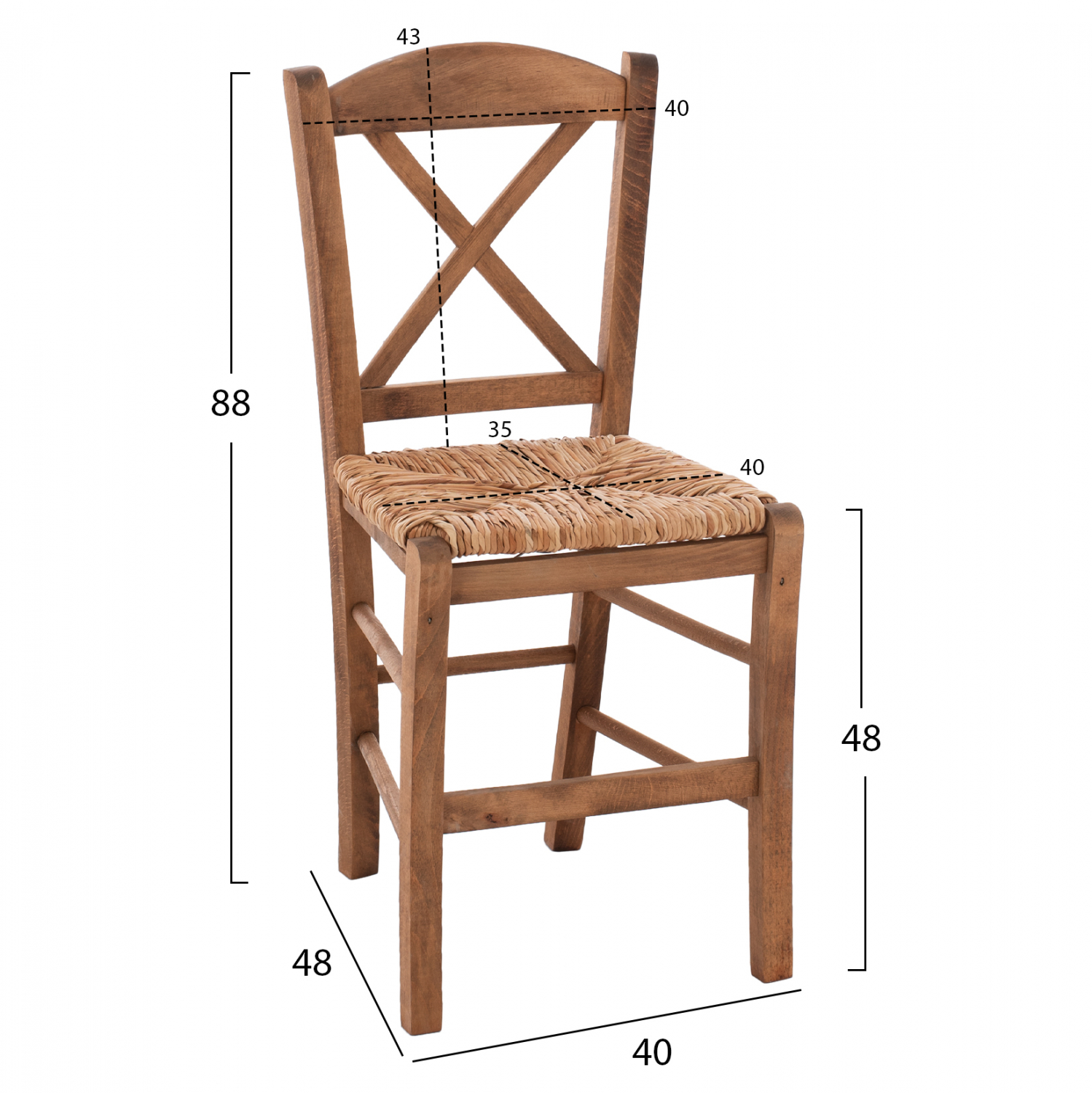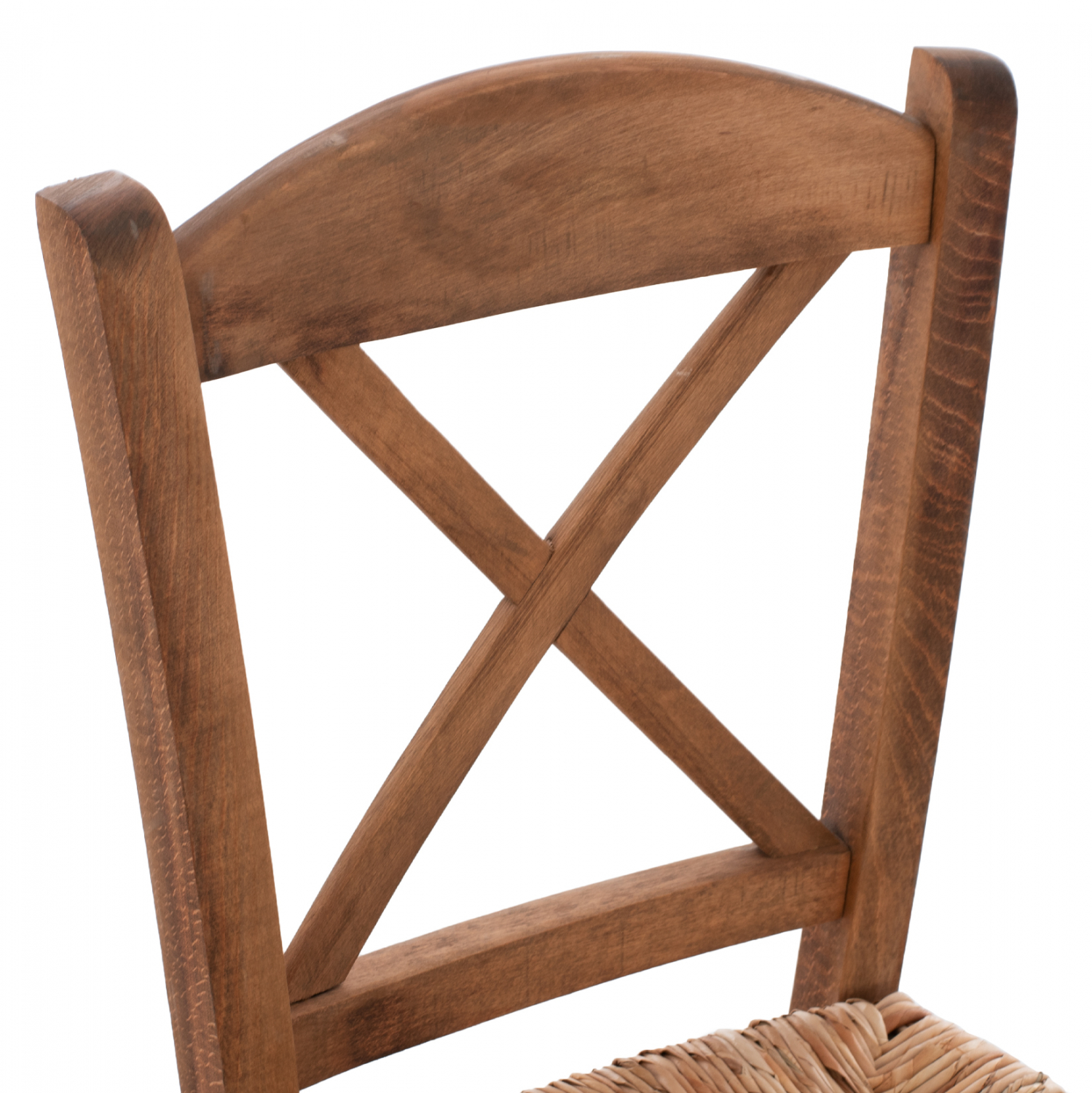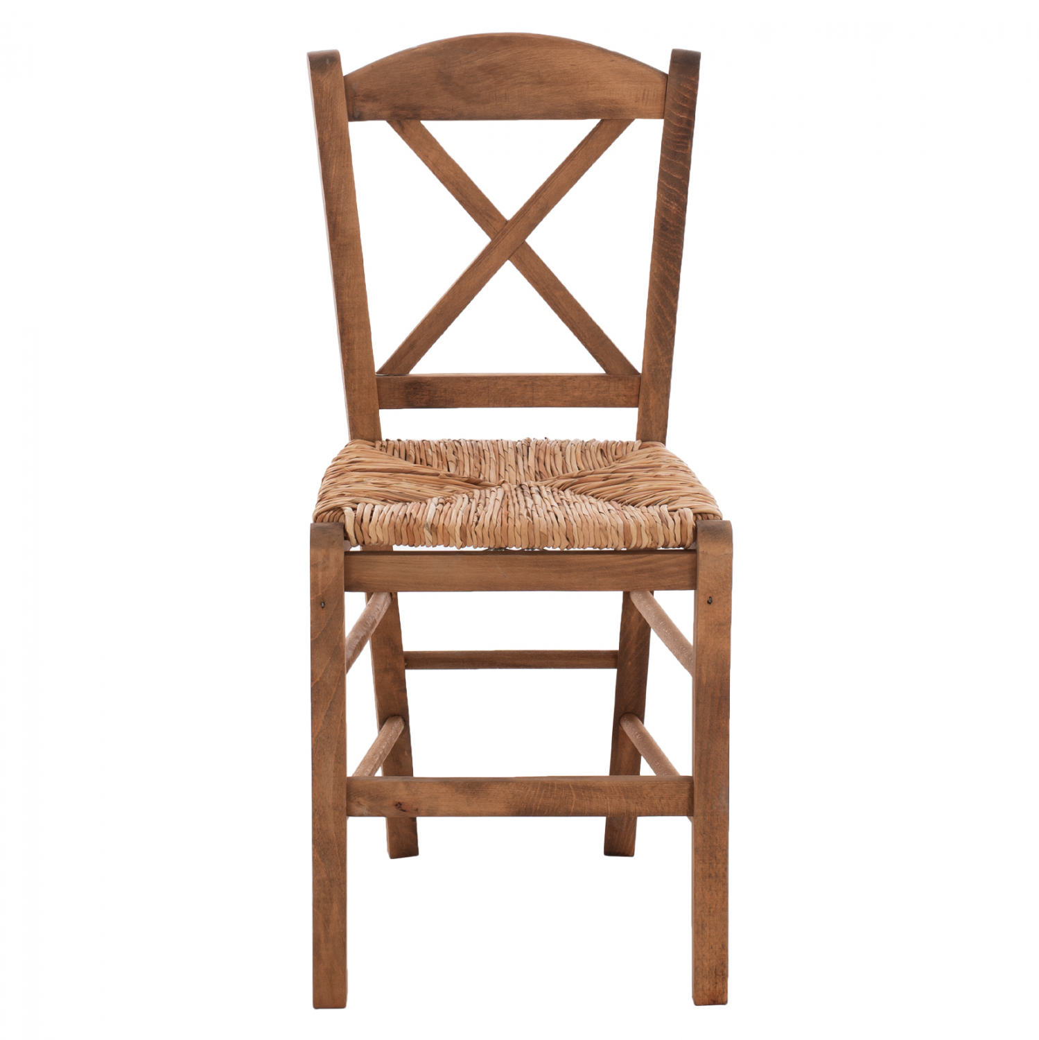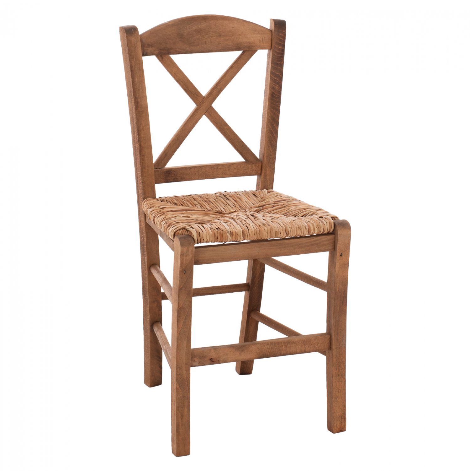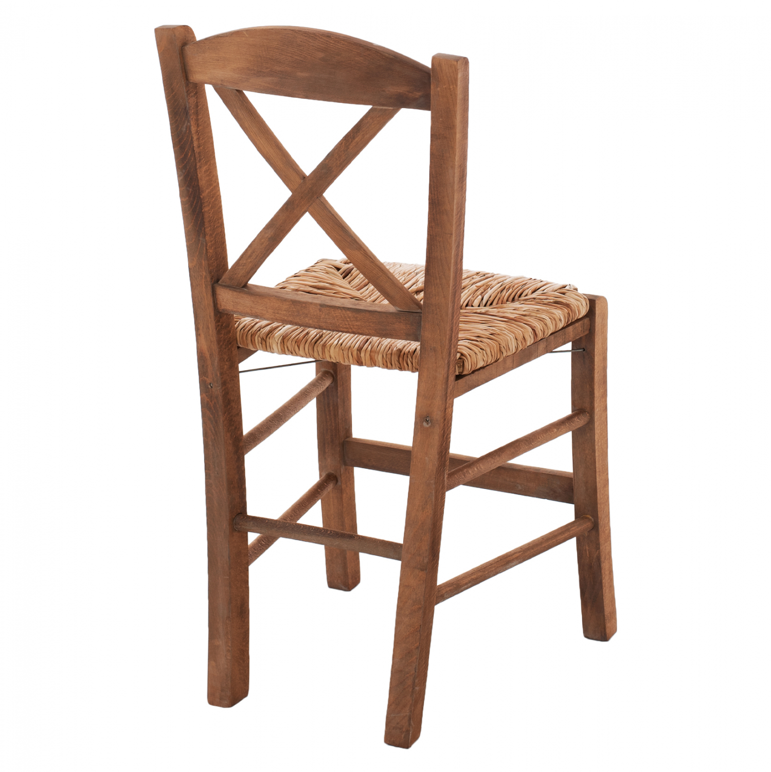 Καρέκλα καφενείου χιαστή από μασίφ ξύλο φουρνιστής οξιάς εμποτισμού καρυδί και ψάθα.