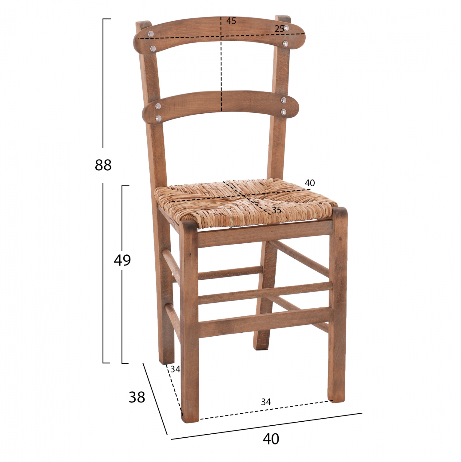 Καρέκλα καφενείου καρφωτή από μασίφ ξύλο φουρνιστής οξιάς εμποτισμού καρυδί και ψάθα.