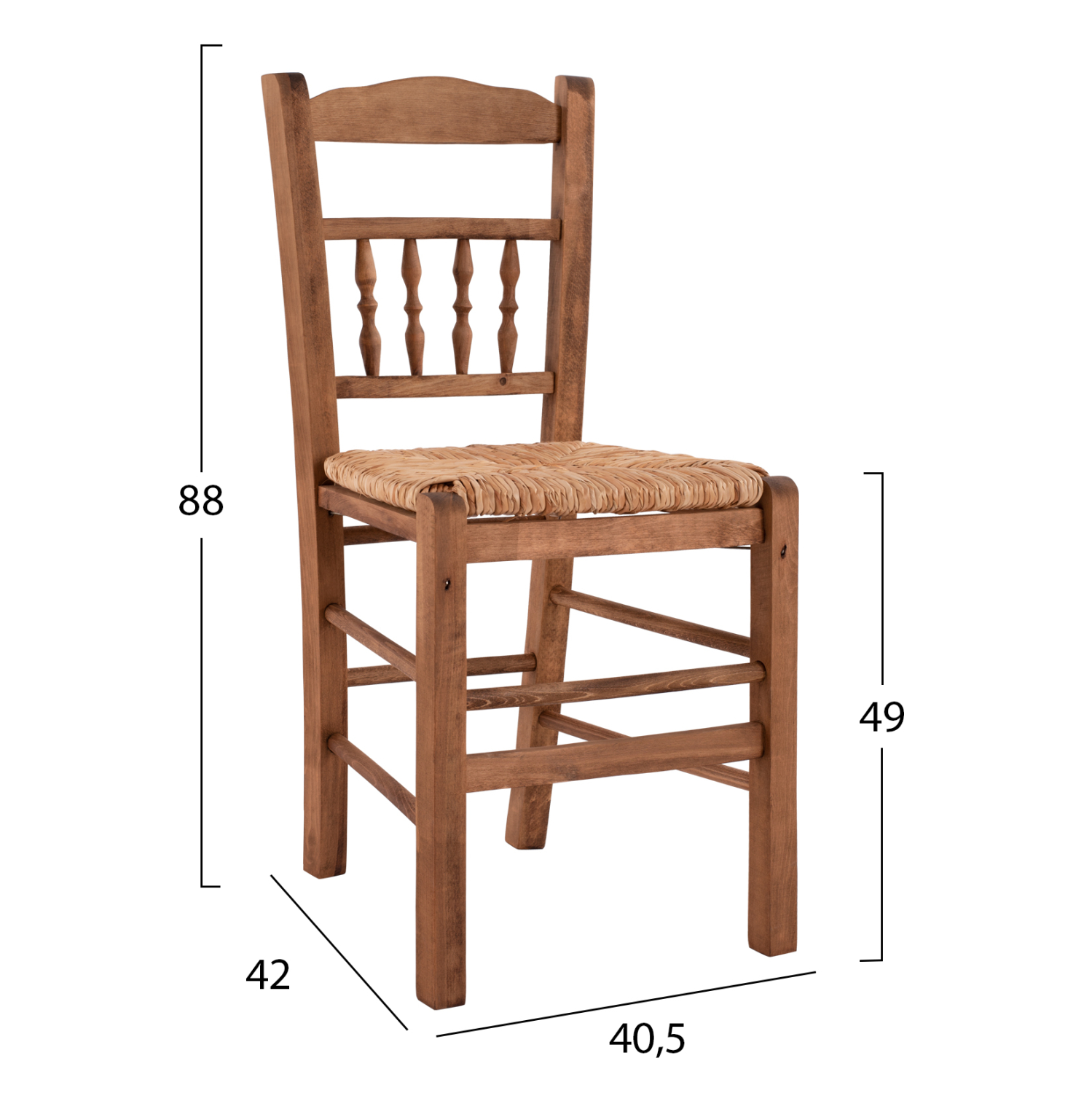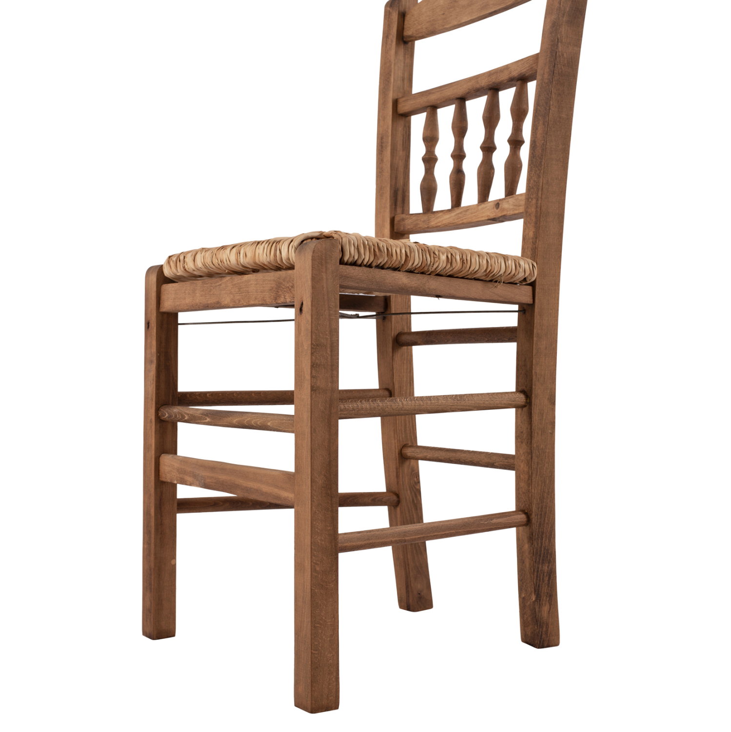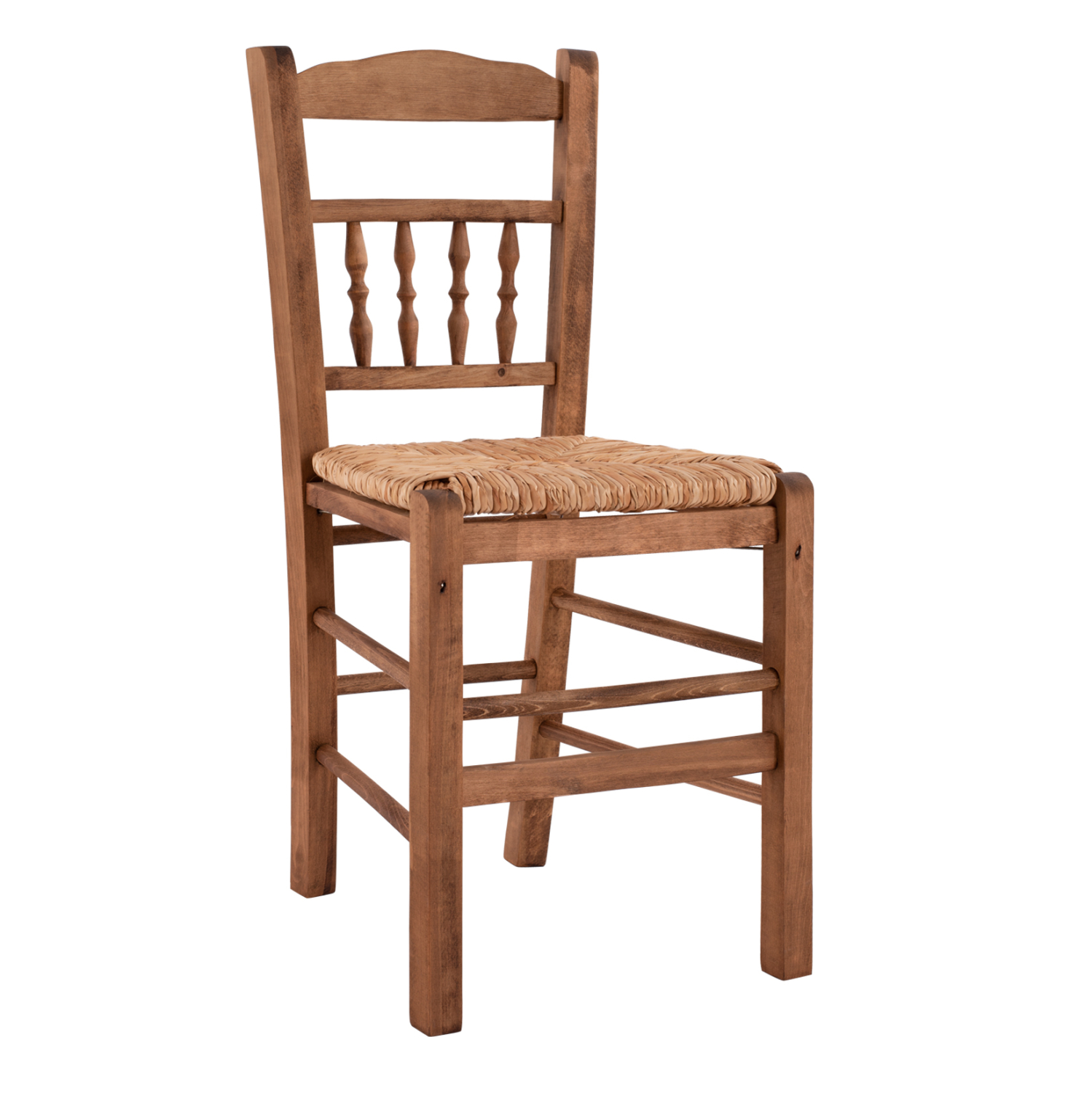Καρέκλα καφενείου καγκελωτή από ξύλο οξιάς εμποτισμού καρυδί και ψάθα.