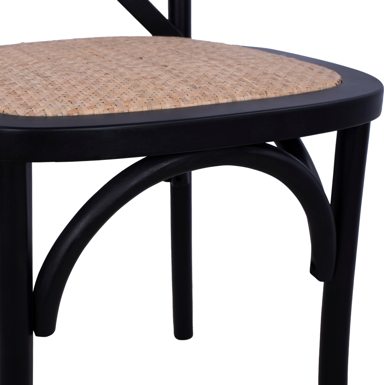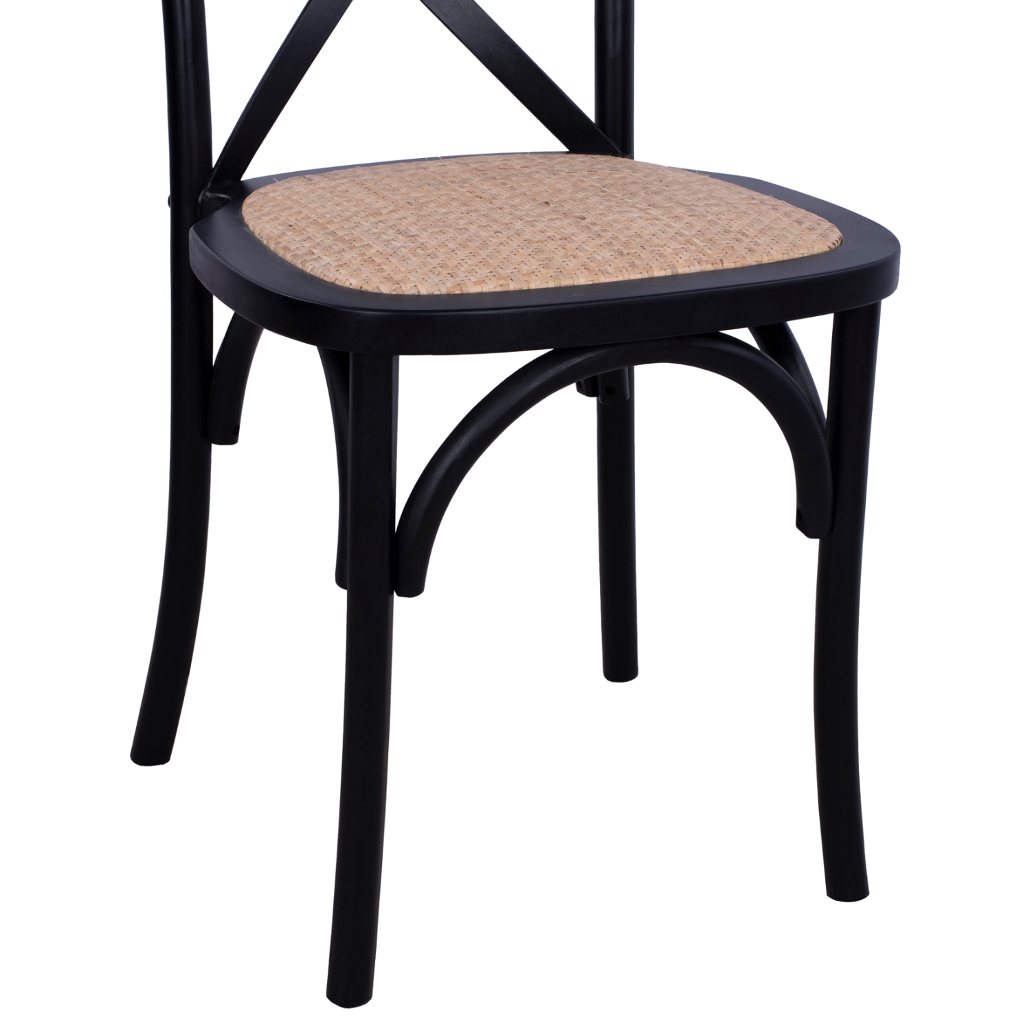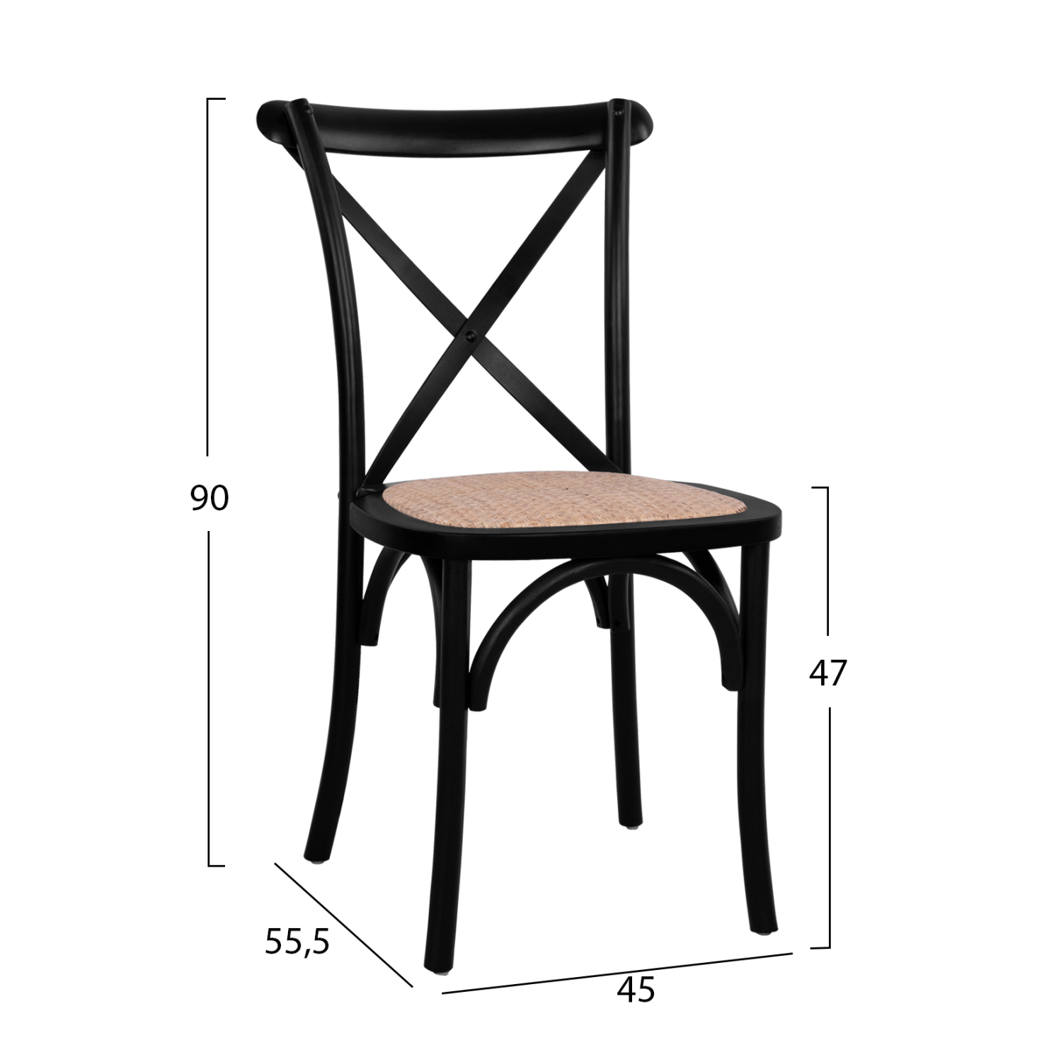 Η καρέκλα είναι κατασκευασμένη από υψηλής αντοχής ξύλο οξιάς σε μαύρο ματ απόχρωση, ενώ το κάθισμα της καρέκλας είναι από ψάθα με χειροποίητη πλέξη.