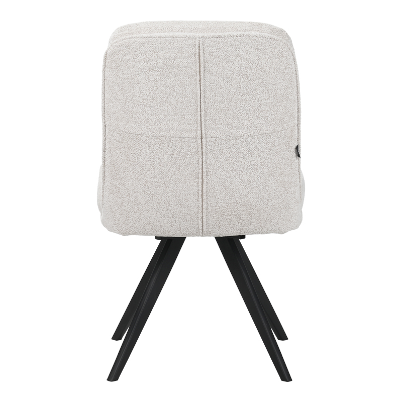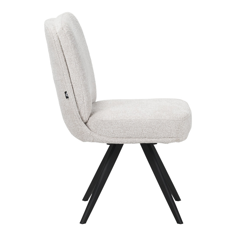 - Το κάθισμα και η πλάτη είναι επενδυμένα με ύφασμα σε μια λευκή περλέ απόχρωση που προσδίδει έναν τόνο πολυτέλειας και φωτεινότητας στον χώρο.