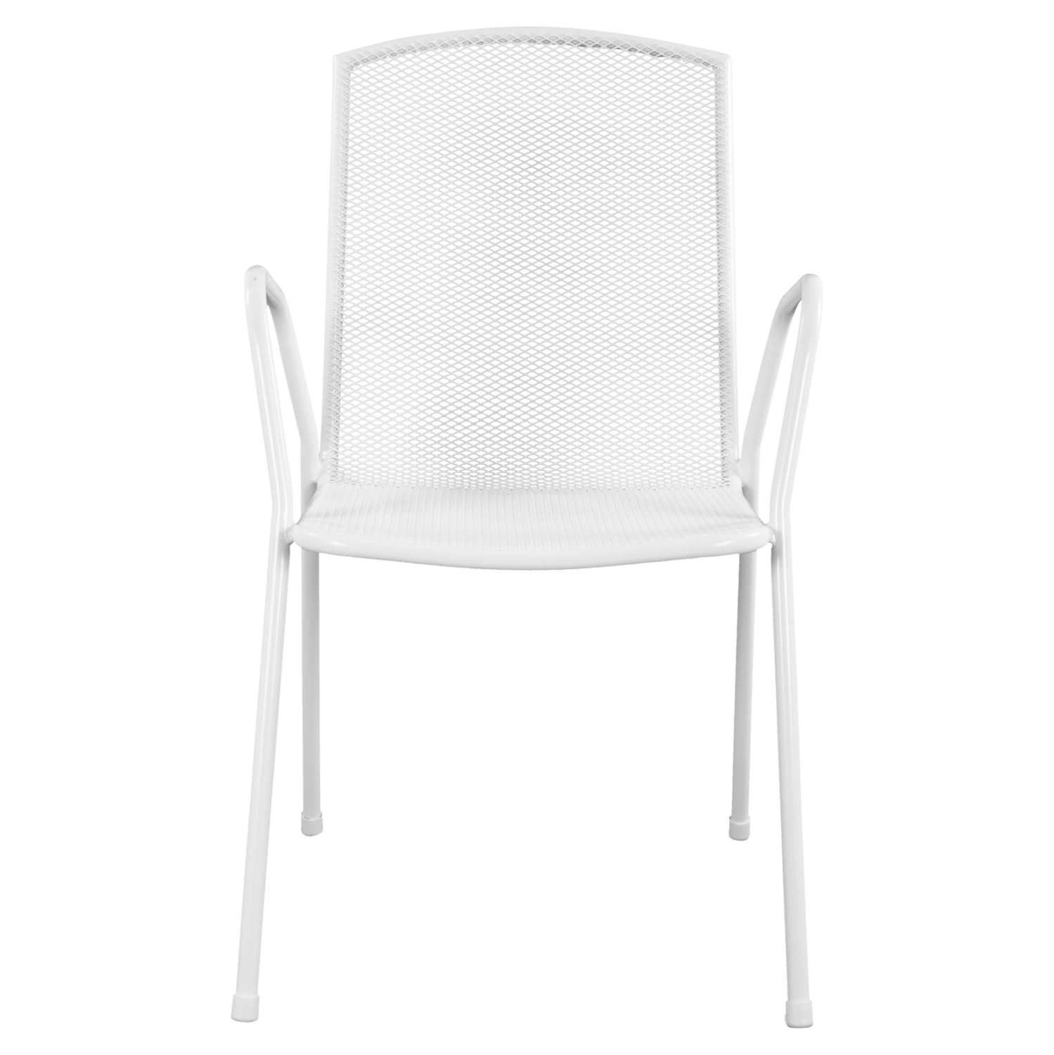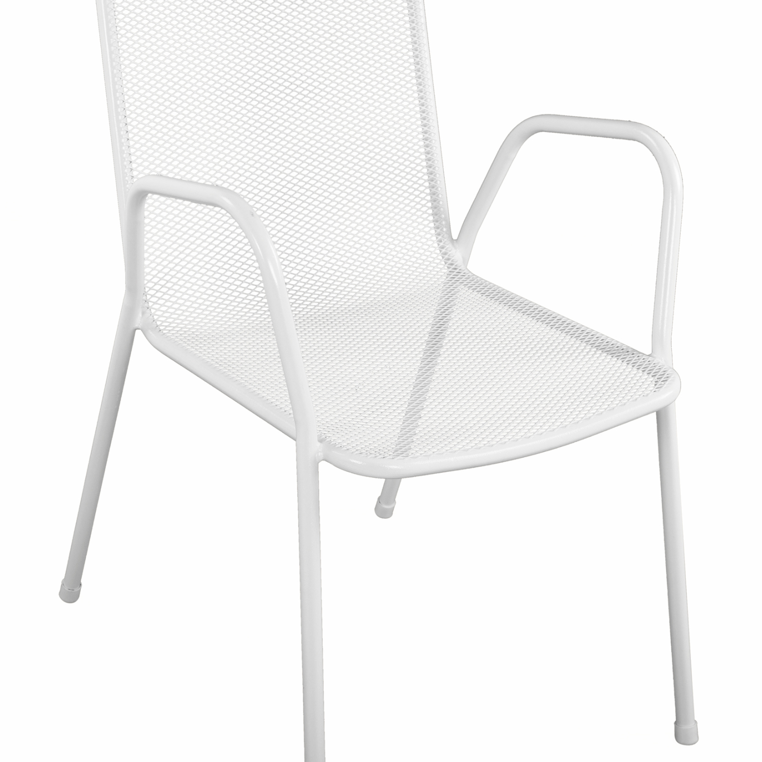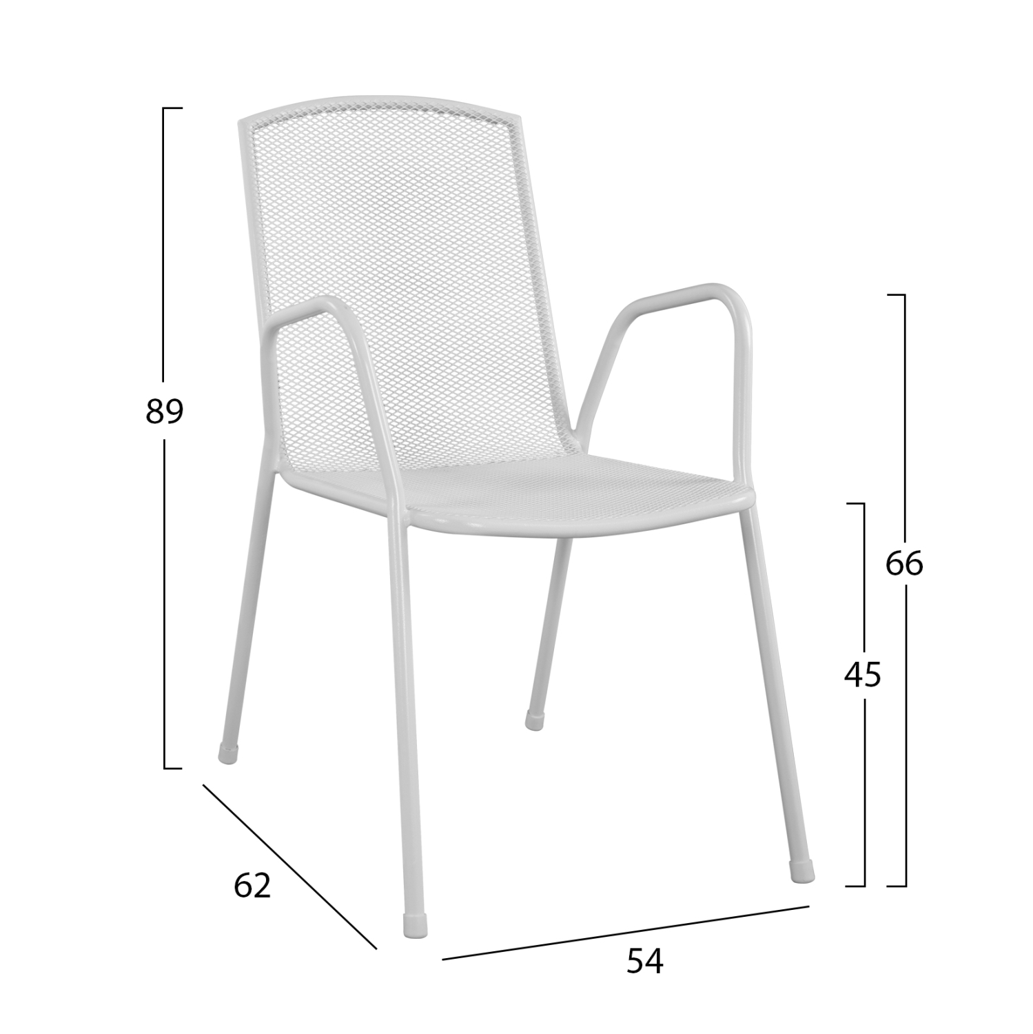 Πολυθρόνα μεταλλική για εξωτερικό χώρο. Η βάση και το κάθισμα της καρέκλας είναι από μεταλλικό πλέγμα.
