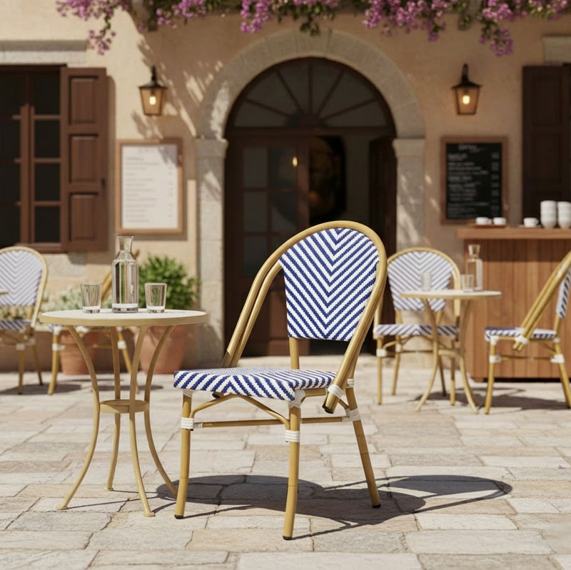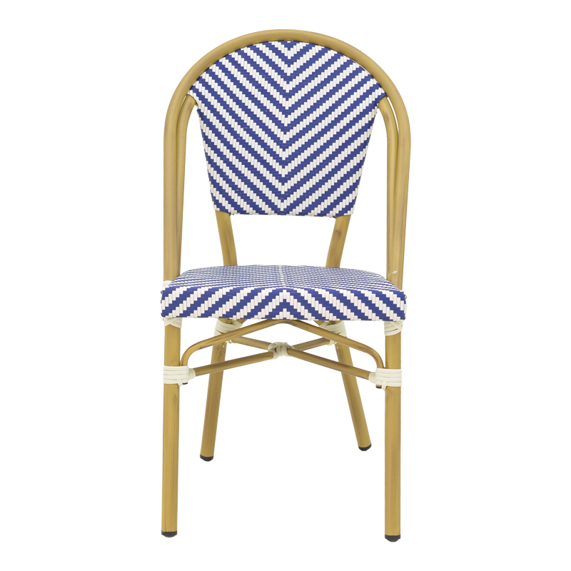 Καρέκλα Uamrin pakoworld στοιβαζόμενη φυσικό αλουμίνιο-λευκό και μπλε pe rattan 46x57x85εκ