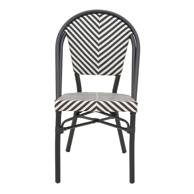 Καρέκλα Uamrin pakoworld στοιβαζόμενη μαύρο αλουμίνιο-ασπρόμαυρο pe rattan 46x57x85εκ