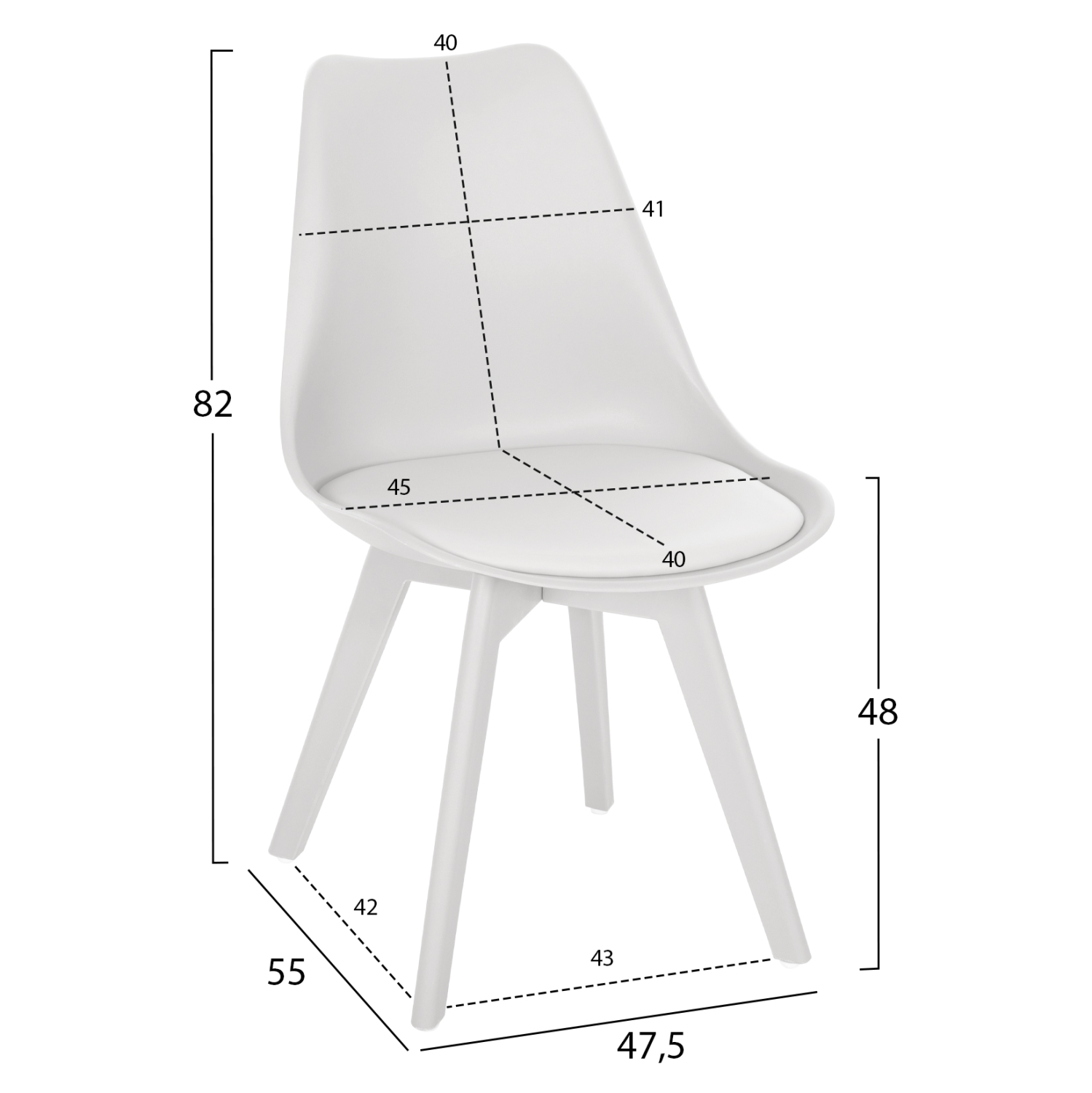 Ολόκληρη η καρέκλα είναι κατασκευασμένη από ενισχυμένο πολυπροπυλένιο σε ΛΕΥΚΟ χρώμα. Το πολυπροπυλένιο είναι ιδιαίτερα ανθεκτικό στο βάρος και στο νερό
