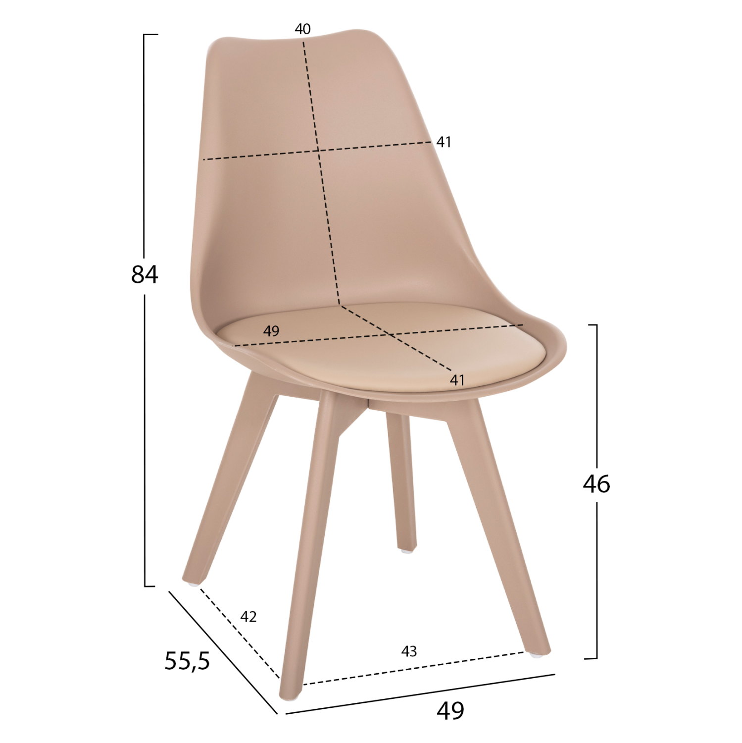 Κάθισμα: Υψηλής ποιότητας πολυπροπυλένιο με δερμάτινο PU μαξιλαράκι σε απόχρωση καπουτσίνο.