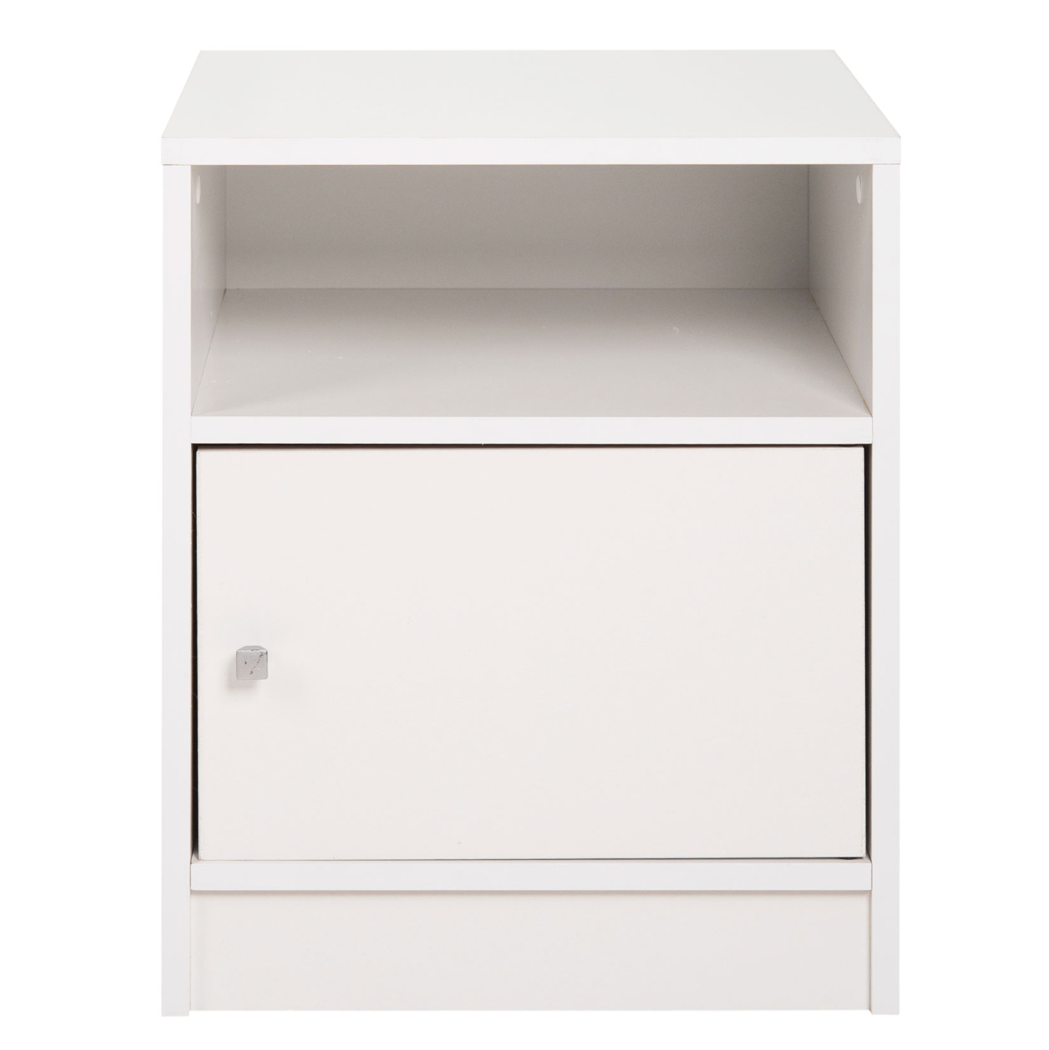 Το κομοδίνο MALORY είναι ένα πρακτικό και όμορφο έπιπλο που θα συνοδεύσει και θα συμπληρώσει με τον καλύτερο τρόπο τον εξοπλισμό του υπνοδωματίου σας. Είναι κατασκευασμένο από ποιοτική μελαμίνη σε ΛΕΥΚΟ χρώμα και διαθέτει ένα ντουλαπάκι με ασημένιο χερούλι κι έναν ανοιχτό χώρο σαν ράφι πάνω από το ντουλαπάκι. Οι διαστάσεις του το καθιστούν ιδανικό ακόμα και για μικρά δωμάτια, ενώ ενδείκνυται τόσο για το σπίτι, όσο και για επαγγελματική χρήση.