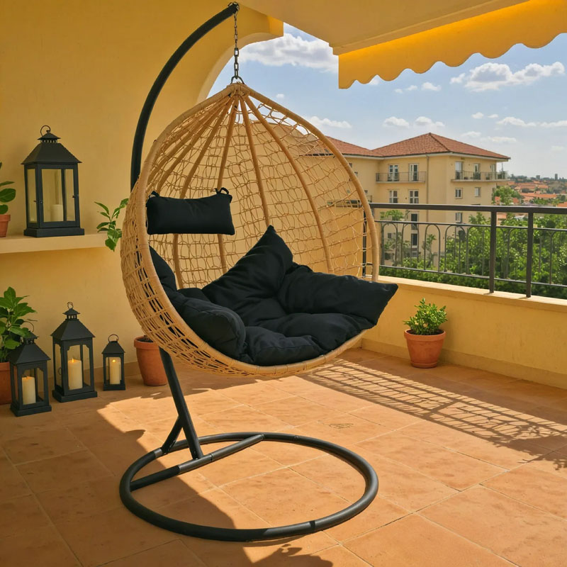 Κούνια Zafer pakoworld κρεμαστή pp σε φυσικό χρώμα και μαύρο μέταλλο 106x103x200εκ